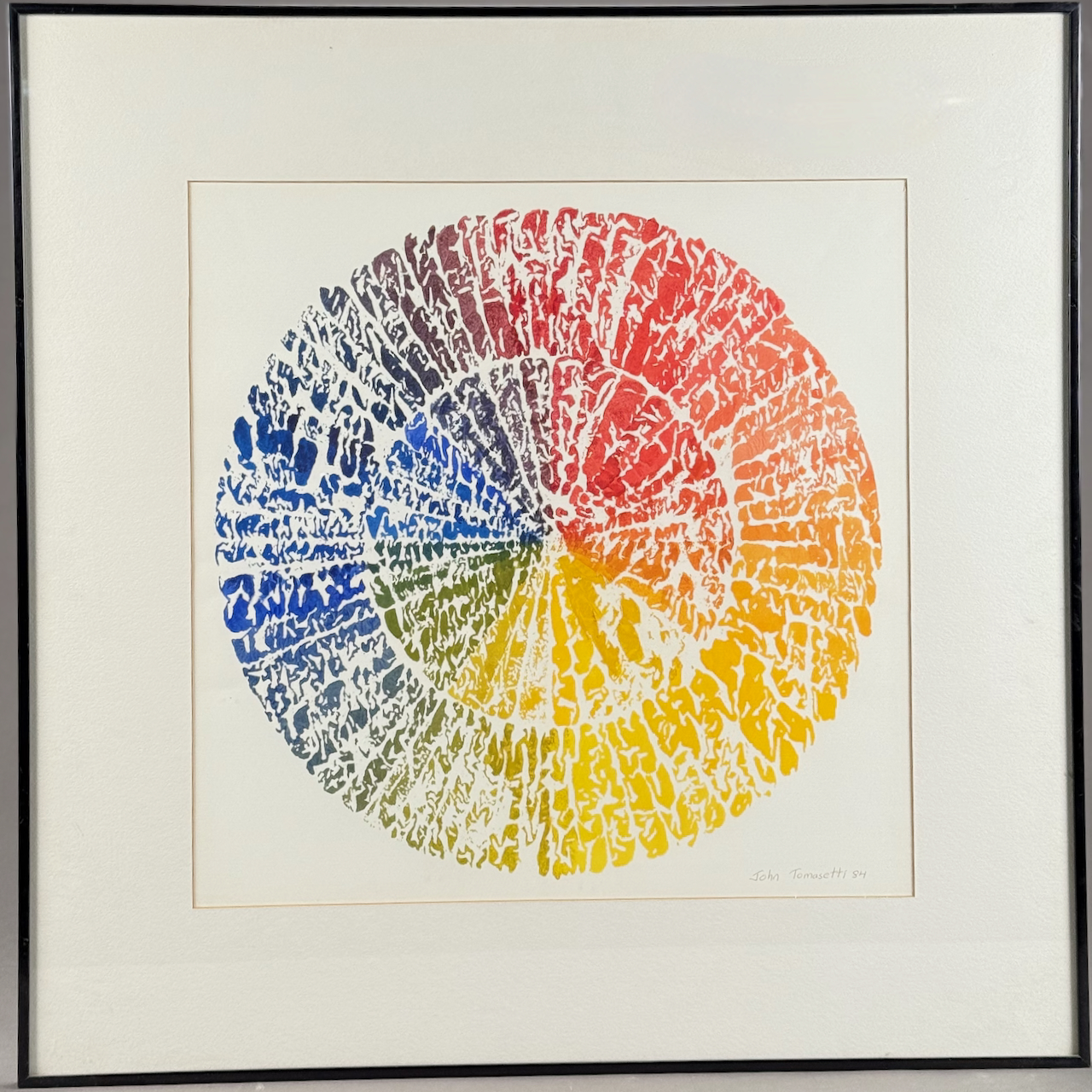 Home / ANTIQUE ESTATE AUCTION - FRI DECEMBER 12 AT 6 PM / LOT 203 JOHN TOMASETTI, CIRCLE OF COLOR, WATERCOLOR, SIGNED LOWER RIGHT AND DATED 84, FRAMED. 20-1/2 X 20-1/2 SIGHT SIZE LOT 203 JOHN TOMASETTI, CIRCLE OF COLOR, WATERCOLOR, SIGNED LOWER RIGHT AND DATED 84, FRAMED. 20-1/2 X 20-1/2 SIGHT SIZE Place a Bid Category: ANTIQUE ESTATE AUCTION - FRI DECEMBER 12 AT 6 PM Tag: auction Related products LOT 019 COIN SILVER MUG BY C. BARD & SON, PHILADELPHIA, PA, CIRCA 1850 INSCRIBED ‘ANNA CRAIG FULTON’, THE BODY HAVING REPOUSSE FLOWERS. 3-1/2″(H), 3.3 OZT LOT 001 PAIR OF STERLING SILVER COLUMN CANDLESTICKS BY GORHAM MARKED A3207 EACH HAVING REMOVABLE BOBECHES. 10-1/4″(H) LOT 016 6 PCS OF STERLING SILVER: (1) 6″(D) PLATE BY TOWLE. (2) 3-1/2 FOOTED CREAMER BY POOLE. (3) 4″(D) FOOTED BOWL BY SHREVE, CRUMP & LOW CO (4) 7″(L) FOOTED GRAVY BY J.E. CALDWELL & CO (5) 4″ CREAMER BY DOMINICK & HAFF (6) 6-3/4″(W) DISH BY TOWLE. 25.2 OZT LOT 007 FIXED HANDLED STERLING SILVER LOW BASKET MARKED BIGELOW, KENNARD & CO. 5-1/2″(H), 10-1/2″(D), 9.8 OZT
