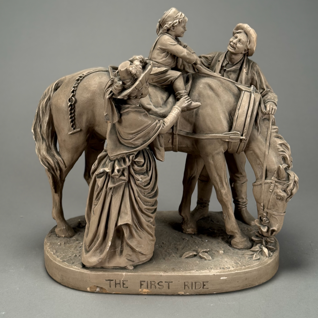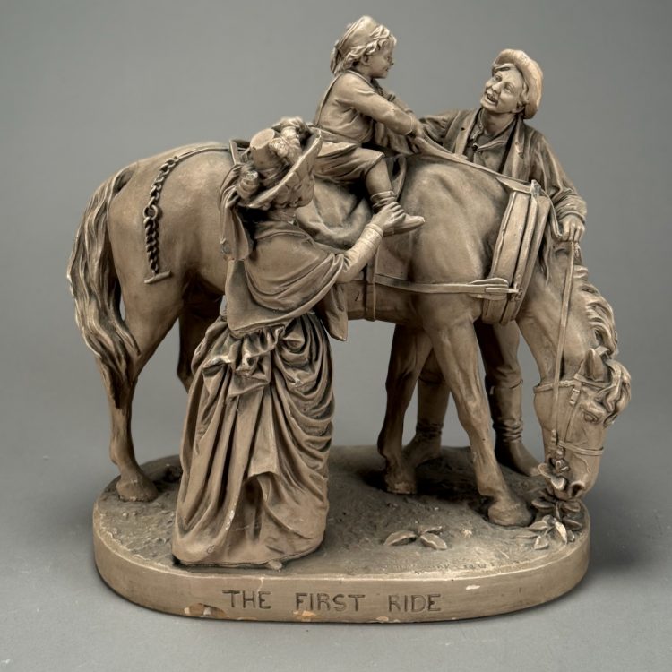 Home / OCTOBER 3 AT 6 PM / LOT 207 JOHN ROGERS GROUP STATUE, “THE FIRST RIDE” (WITH HAT), PLASTER. 18″(H) LOT 207 JOHN ROGERS GROUP STATUE, “THE FIRST RIDE” (WITH HAT), PLASTER. 18″(H) Place a Bid Categories: ANTIQUE AUCTION - FRI OCTOBER 3 AT 6 PM, OCTOBER 3 AT 6 PM Tag: auction Related products LOT 002 3 PC STERLING SILVER TEA SET BY GORHAM CONSISTING OF 10″ TEAPOT (2441), 6-1/2″ CREAMER (2444), 6″ COVERED SUGAR (2443), 45 OZT LOT 003 PAIR OF STERLING SILVER PORRINGERS BY GEBELEIN, BOSTON. 7″(L), 4-3/4 BOWL, 12 OZT LOT 021 OSCAR BERNINGHAUS, ‘THE ROAD TO TAOS’, OIL ON CANVAS, SIGNED LOWER RIGHT, GILT FRAME WITH ARTIST PLAQUE. ON REVERSE OF FRAME IS A PENNSYLVANIA ACADEMY OF THE FINE ART LABEL FOR THEIR 109TH ANNUAL ART EXHIBITION WITH TITLE AND ARTIST (1914). 24 X 36 LOT 019 COIN SILVER MUG BY C. BARD & SON, PHILADELPHIA, PA, CIRCA 1850 INSCRIBED ‘ANNA CRAIG FULTON’, THE BODY HAVING REPOUSSE FLOWERS. 3-1/2″(H), 3.3 OZT