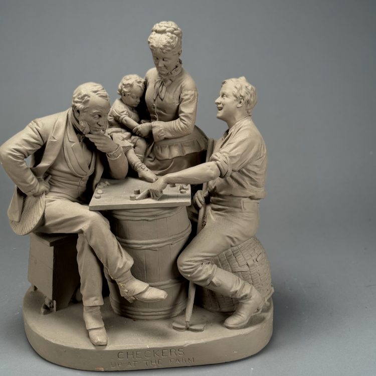 Home / OCTOBER 3 AT 6 PM / LOT 208 JOHN ROGERS GROUP STATUE, “CHECKERS UP AT THE FARM”, PLASTER. 20″(H) LOT 208 JOHN ROGERS GROUP STATUE, “CHECKERS UP AT THE FARM”, PLASTER. 20″(H) Place a Bid Categories: ANTIQUE AUCTION - FRI OCTOBER 3 AT 6 PM, OCTOBER 3 AT 6 PM Tag: auction Related products LOT 023 STEPHEN G. MANIATTY, ‘SAWMILL’, OIL ON CANVAS, SIGNED LOWER RIGHT, FRAMED WITH AN AWARD PLAQUE “GRUMBACHER ARTISTS MATERIAL AWARD/GRAND NATIONAL EXHIBITION/NEW YORK CITY – 1965”. 20 X 30 LOT 013 3 PCS OF STERLING SILVER: (1) OVAL DEEP SERVING DISH BY E. CALDWELL & CO, 10 X 6-1/2. (2) PORRINGER BY DOMINICK & HAFF, 7″. (3) PORRINGER BY RWM, 6″. 21.8 OZT LOT 017 CONTINENTAL SILVER (.800) DRESSER BOX MARKED ON BASE ‘BEUTHNER’. 3-1/4″(H), 5-1/2″(W) X 4″(D), 8 OZT LOT 006 FINE PAIR OF FANCY STERLING SILVER CANDLESTICKS, SHEFFIELD, 1903-4 WITH MAKER’S MARK ‘HE LD’, 12″(H)