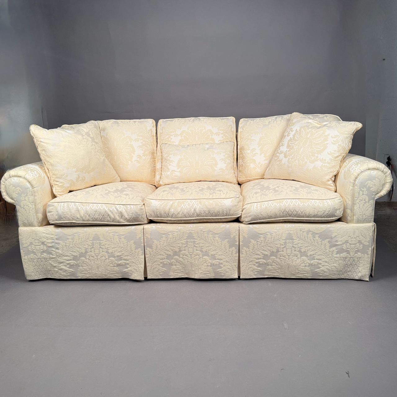 Home / ANTIQUE AUCTION - FRI NOVEMBER 7 AT 6 PM / LOT 209 FINE STICKLEY 3-SEAT SOFA IN IVORY UPHOLSTERY 31”(H) 88”(W) 36”(D) LOT 209 FINE STICKLEY 3-SEAT SOFA IN IVORY UPHOLSTERY 31”(H) 88”(W) 36”(D) Place a Bid Category: ANTIQUE AUCTION - FRI NOVEMBER 7 AT 6 PM Tag: auction Related products LOT 001 PAIR OF STERLING SILVER COLUMN CANDLESTICKS BY GORHAM MARKED A3207 EACH HAVING REMOVABLE BOBECHES. 10-1/4″(H) LOT 024 STEPHEN G. MANIATTY, ‘OCTOBERS GIFT’, OIL ON CANVAS, SIGNED LOWER RIGHT, FRAMED. 34 X 25 LOT 019 COIN SILVER MUG BY C. BARD & SON, PHILADELPHIA, PA, CIRCA 1850 INSCRIBED ‘ANNA CRAIG FULTON’, THE BODY HAVING REPOUSSE FLOWERS. 3-1/2″(H), 3.3 OZT LOT 013 3 PCS OF STERLING SILVER: (1) OVAL DEEP SERVING DISH BY E. CALDWELL & CO, 10 X 6-1/2. (2) PORRINGER BY DOMINICK & HAFF, 7″. (3) PORRINGER BY RWM, 6″. 21.8 OZT