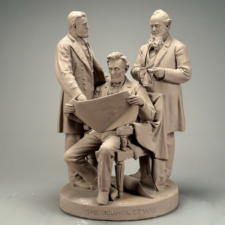 Home / OCTOBER 3 AT 6 PM / LOT 209 JOHN ROGERS GROUP STATUE, “THE COUNCIL ON WAR” (HANDS FORWARD OF HEAD), PLASTER. 24″(H) LOT 209 JOHN ROGERS GROUP STATUE, “THE COUNCIL ON WAR” (HANDS FORWARD OF HEAD), PLASTER. 24″(H) Place a Bid Categories: ANTIQUE AUCTION - FRI OCTOBER 3 AT 6 PM, OCTOBER 3 AT 6 PM Tag: auction Related products LOT 001 PAIR OF STERLING SILVER COLUMN CANDLESTICKS BY GORHAM MARKED A3207 EACH HAVING REMOVABLE BOBECHES. 10-1/4″(H) LOT 015 42 PC STERLING FLATWARE SET BY LUNT IN THE ‘WILLIAM & MARY’ PATTERN, NO MONOGRAM. 34.5 OZT (W/O 12 KNIVES) LOT 020 STERLING SILVER HINGED SQUARE BOX, LONDON, 1806, MAKERS MARK RH?, THE LID WITH A REPOUSSE SCENE OF 2 MEN PLAYING A BOARD GAME. 1-1/4″(H), 4″(W), 4″(D) LOT 010 2 STERLING SILVER SHAKERS, ONE 6″(H) WITH BLURRED ENGLISH HALLMARKS, THE OTHER 6-1/2″(H) MARKED STERLING. 9 OZT