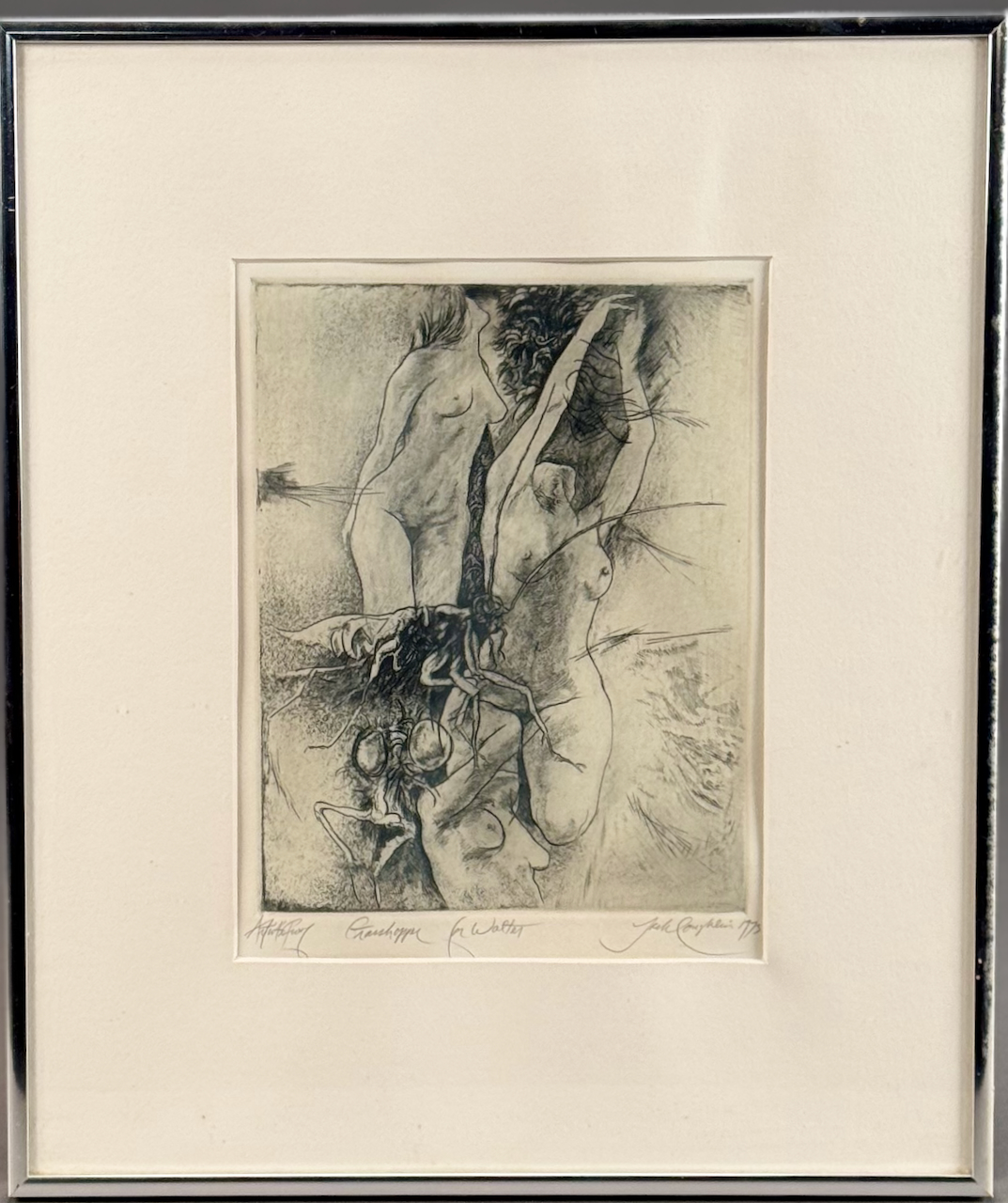 Home / ANTIQUE ESTATE AUCTION - FRI MARCH 27 AT 6 PM / LOT 212 JACK COUGHLIN, “GRASSHOPPER”, ETCHING, ARTIST PROOF, SIGNED LOWER RIGHT AND DATED 1973, ALSO INSCRIBED “FOR WALTER” (WALTER KAMYS), FRAMED. 9 X 6-3/4 SIGHT SIZE LOT 212 JACK COUGHLIN, “GRASSHOPPER”, ETCHING, ARTIST PROOF, SIGNED LOWER RIGHT AND DATED 1973, ALSO INSCRIBED “FOR WALTER” (WALTER KAMYS), FRAMED. 9 X 6-3/4 SIGHT SIZE Place a Bid Category: ANTIQUE ESTATE AUCTION - FRI MARCH 27 AT 6 PM Tag: auction Related products LOT 010 2 STERLING SILVER SHAKERS, ONE 6″(H) WITH BLURRED ENGLISH HALLMARKS, THE OTHER 6-1/2″(H) MARKED STERLING. 9 OZT LOT 007 FIXED HANDLED STERLING SILVER LOW BASKET MARKED BIGELOW, KENNARD & CO. 5-1/2″(H), 10-1/2″(D), 9.8 OZT LOT 006 FINE PAIR OF FANCY STERLING SILVER CANDLESTICKS, SHEFFIELD, 1903-4 WITH MAKER’S MARK ‘HE LD’, 12″(H) LOT 018 COIN SILVER HANDLED CUP, PROBABLY FREEMAN & WALLIN, PHILADELPHIA, CIRCA 1850. 4″(H), 3.6 OZT.