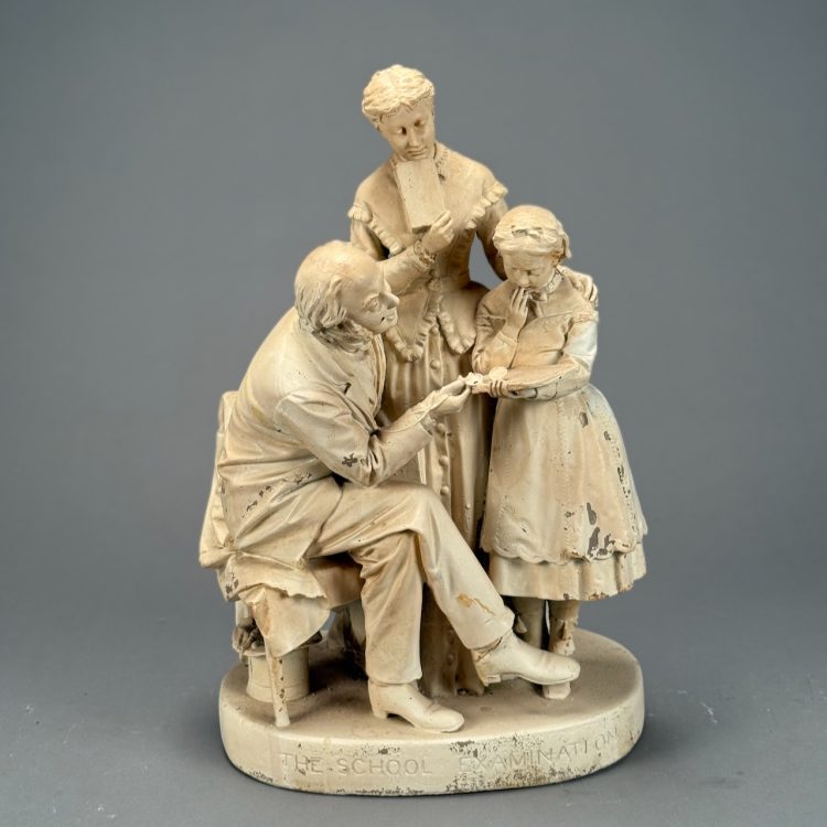 Home / ANTIQUE AUCTION - FRI OCTOBER 3 AT 6 PM / LOT 213 JOHN ROGERS GROUP STATUE, “SCHOOL EXAMINATION”, PLASTER. 20″(H) LOT 213 JOHN ROGERS GROUP STATUE, “SCHOOL EXAMINATION”, PLASTER. 20″(H) Place a Bid Categories: ANTIQUE AUCTION - FRI OCTOBER 3 AT 6 PM, OCTOBER 3 AT 6 PM Tag: auction Related products LOT 009 48 PC STERLING SILVER FLATWARE SET IN THE “KING GEORGE” PATTERN BY GORHAM, 57 OZT (WITHOUT 16 KNIVES) MONOGRAMMED LOT 020 STERLING SILVER HINGED SQUARE BOX, LONDON, 1806, MAKERS MARK RH?, THE LID WITH A REPOUSSE SCENE OF 2 MEN PLAYING A BOARD GAME. 1-1/4″(H), 4″(W), 4″(D) LOT 001 PAIR OF STERLING SILVER COLUMN CANDLESTICKS BY GORHAM MARKED A3207 EACH HAVING REMOVABLE BOBECHES. 10-1/4″(H) LOT 002 3 PC STERLING SILVER TEA SET BY GORHAM CONSISTING OF 10″ TEAPOT (2441), 6-1/2″ CREAMER (2444), 6″ COVERED SUGAR (2443), 45 OZT