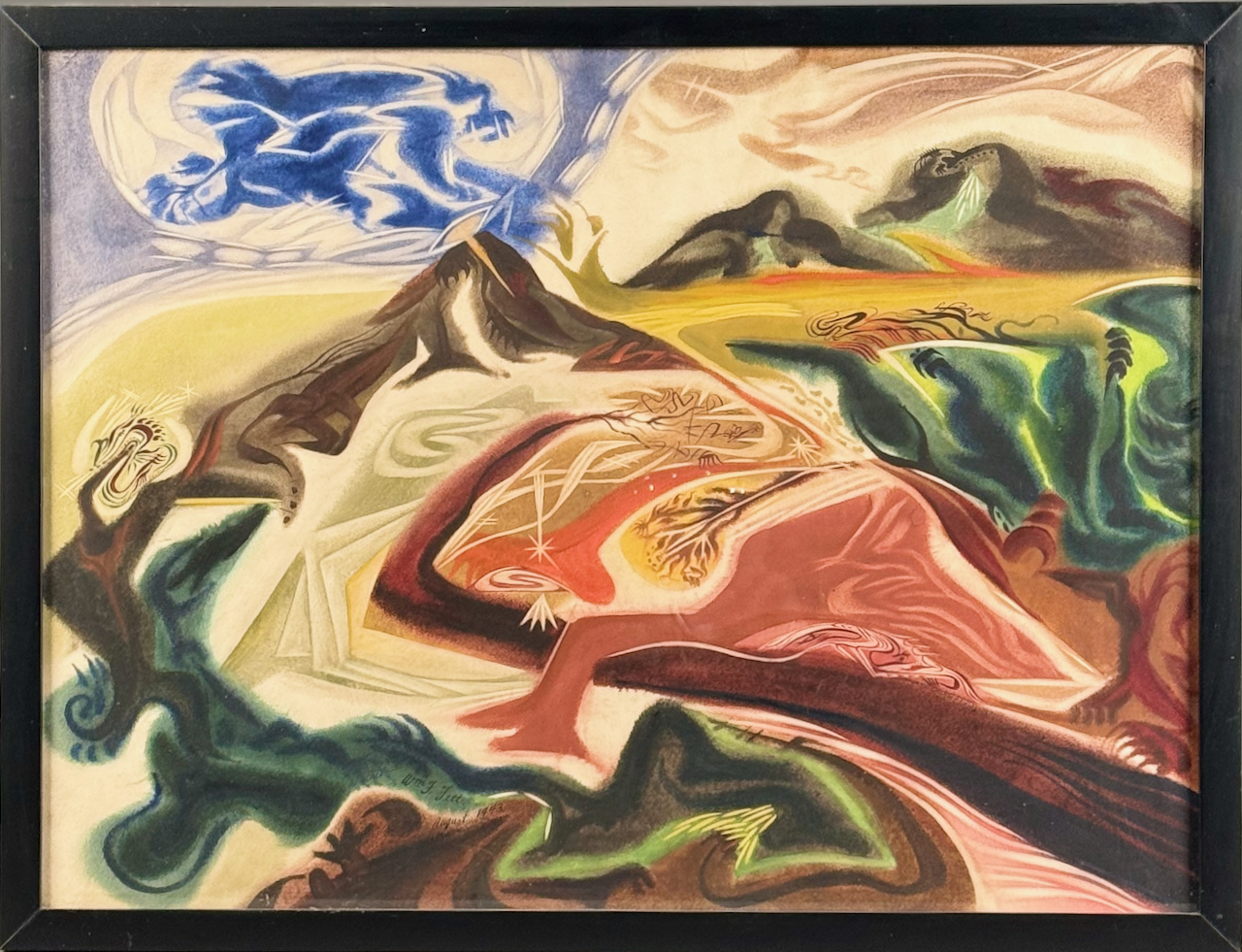 Home / ANTIQUE ESTATE AUCTION - FRI MARCH 27 AT 6 PM / LOT 214 WILLIAM FETT, ABSTRACT LANDSCAPE, WATERCOLOR, SIGNED CENTER BOTTOM “WM F. FETT AUGUST 1943”, FRAMED. 19-1/2 X 26 SIGHT SIZE LOT 214 WILLIAM FETT, ABSTRACT LANDSCAPE, WATERCOLOR, SIGNED CENTER BOTTOM “WM F. FETT AUGUST 1943”, FRAMED. 19-1/2 X 26 SIGHT SIZE Place a Bid Category: ANTIQUE ESTATE AUCTION - FRI MARCH 27 AT 6 PM Tag: auction Related products LOT 020 STERLING SILVER HINGED SQUARE BOX, LONDON, 1806, MAKERS MARK RH?, THE LID WITH A REPOUSSE SCENE OF 2 MEN PLAYING A BOARD GAME. 1-1/4″(H), 4″(W), 4″(D) LOT 008 11 STERLING SILVER PLATES BY GORHAM. 6″(D), 27.8 OZT LOT 007 FIXED HANDLED STERLING SILVER LOW BASKET MARKED BIGELOW, KENNARD & CO. 5-1/2″(H), 10-1/2″(D), 9.8 OZT LOT 022 STEPHEN G. MANIATTY, ‘BUCKET OF POSIES’, OIL ON CANVAS, SIGNED LOWER RIGHT, FRAMED. 38 X 36