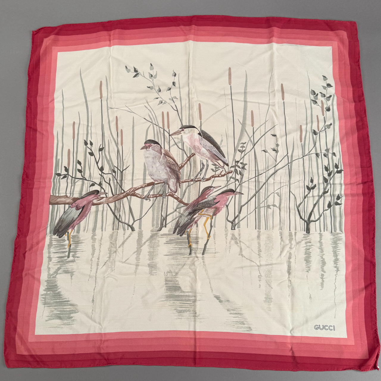Home / ANTIQUE ESTATE AUCTION - FRI JANUARY 30 AT 6 PM / LOT 222 TWO GUCCI SILK SCARVES, ONE WITH HERONS, 25″ X 25″, THE OTHER WITH TROPICAL FISH, 34′ X 34″ LOT 222 TWO GUCCI SILK SCARVES, ONE WITH HERONS, 25″ X 25″, THE OTHER WITH TROPICAL FISH, 34′ X 34″ Place a Bid Category: ANTIQUE ESTATE AUCTION - FRI JANUARY 30 AT 6 PM Tag: auction Related products LOT 006 FINE PAIR OF FANCY STERLING SILVER CANDLESTICKS, SHEFFIELD, 1903-4 WITH MAKER’S MARK ‘HE LD’, 12″(H) LOT 013 3 PCS OF STERLING SILVER: (1) OVAL DEEP SERVING DISH BY E. CALDWELL & CO, 10 X 6-1/2. (2) PORRINGER BY DOMINICK & HAFF, 7″. (3) PORRINGER BY RWM, 6″. 21.8 OZT LOT 012 2 SMALL STERLING SILVER TRAYS. (1) 6″ SQUARE BY DOMINICK & HAFF (2) 7-1/2 X 5-1/2 OVAL FOOTED TRAY BY J.E. CALDWELL & CO, BOTH MONOGRAMMED. 11.7 OZT LOT 020 STERLING SILVER HINGED SQUARE BOX, LONDON, 1806, MAKERS MARK RH?, THE LID WITH A REPOUSSE SCENE OF 2 MEN PLAYING A BOARD GAME. 1-1/4″(H), 4″(W), 4″(D)