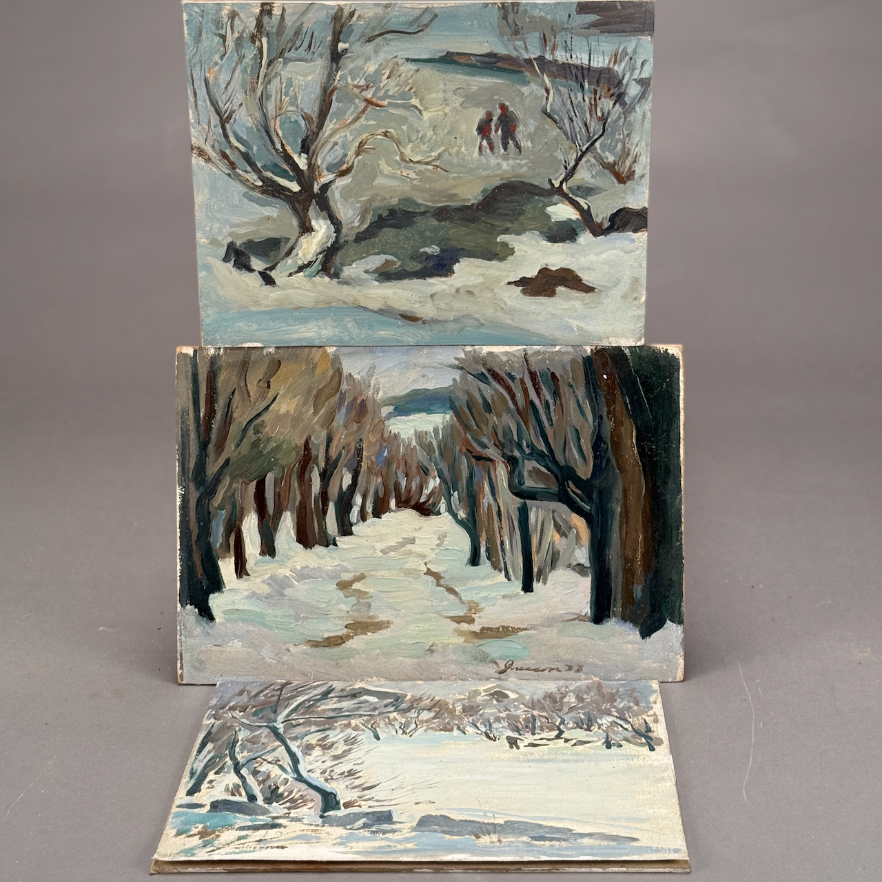 Home / ANTIQUE AUCTION - FRI NOVEMBER 7 AT 6 PM / LOT 223 DONALD GREASON, 3 WORKS: (1) “ANDOVER, MASS 1 MARCH 1933” SIGNED LOWER RIGHT, 9-1/4 X 14. (2) “THE MILL POND, ROCKPORT, MASS 1937”, UNSIGNED, 9 X 12. (3) “ROCKPORT 1938”, SIGNED ON REVERSE, 9 X 12. ALL UNFRAMED, OIL ON BOARD LOT 223 DONALD GREASON, 3 WORKS: (1) “ANDOVER, MASS 1 MARCH 1933” SIGNED LOWER RIGHT, 9-1/4 X 14. (2) “THE MILL POND, ROCKPORT, MASS 1937”, UNSIGNED, 9 X 12. (3) “ROCKPORT 1938”, SIGNED ON REVERSE, 9 X 12. ALL UNFRAMED, OIL ON BOARD Place a Bid Category: ANTIQUE AUCTION - FRI NOVEMBER 7 AT 6 PM Tag: auction Related products LOT 015 42 PC STERLING FLATWARE SET BY LUNT IN THE ‘WILLIAM & MARY’ PATTERN, NO MONOGRAM. 34.5 OZT (W/O 12 KNIVES) LOT 014 PAIR OF STERLING SILVER 2 HANDLED PLATES BY WEBSTER MARKED ‘6613’, NO MONOGRAM, 10-1/2 AT WIDEST, 21.3 OZT LOT 001 PAIR OF STERLING SILVER COLUMN CANDLESTICKS BY GORHAM MARKED A3207 EACH HAVING REMOVABLE BOBECHES. 10-1/4″(H) LOT 002 3 PC STERLING SILVER TEA SET BY GORHAM CONSISTING OF 10″ TEAPOT (2441), 6-1/2″ CREAMER (2444), 6″ COVERED SUGAR (2443), 45 OZT