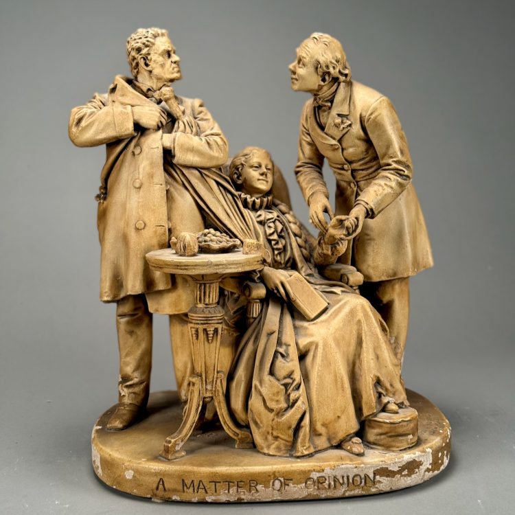Home / ANTIQUE AUCTION - FRI OCTOBER 3 AT 6 PM / LOT 224 JOHN ROGERS GROUP STATUE, “MATTER OF OPINION”, PLASTER, 21″(H) LOT 224 JOHN ROGERS GROUP STATUE, “MATTER OF OPINION”, PLASTER, 21″(H) Place a Bid Categories: ANTIQUE AUCTION - FRI OCTOBER 3 AT 6 PM, OCTOBER 3 AT 6 PM Tag: auction Related products LOT 001 PAIR OF STERLING SILVER COLUMN CANDLESTICKS BY GORHAM MARKED A3207 EACH HAVING REMOVABLE BOBECHES. 10-1/4″(H) LOT 016 6 PCS OF STERLING SILVER: (1) 6″(D) PLATE BY TOWLE. (2) 3-1/2 FOOTED CREAMER BY POOLE. (3) 4″(D) FOOTED BOWL BY SHREVE, CRUMP & LOW CO (4) 7″(L) FOOTED GRAVY BY J.E. CALDWELL & CO (5) 4″ CREAMER BY DOMINICK & HAFF (6) 6-3/4″(W) DISH BY TOWLE. 25.2 OZT LOT 009 48 PC STERLING SILVER FLATWARE SET IN THE “KING GEORGE” PATTERN BY GORHAM, 57 OZT (WITHOUT 16 KNIVES) MONOGRAMMED LOT 024 STEPHEN G. MANIATTY, ‘OCTOBERS GIFT’, OIL ON CANVAS, SIGNED LOWER RIGHT, FRAMED. 34 X 25