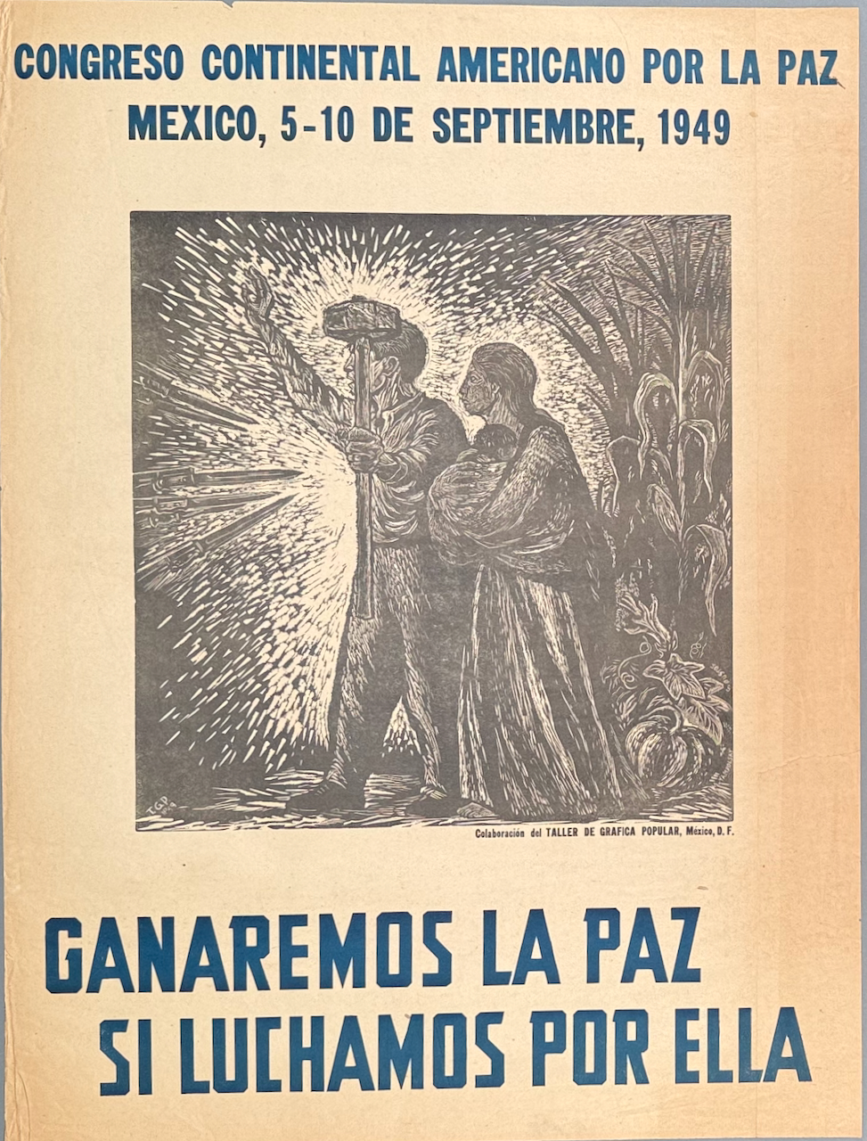 Home / ANTIQUE ESTATE AUCTION - FRI MARCH 27 AT 6 PM / LOT 227 UNFRAMED MEXICAN POLITICAL POSTER, 1949, “WE WILL WIN PEACE IF WE FIGHT IT”, CONTINENTAL AMERICAN CONGRESS FOR PEACE. 31-3/4 X 24 LOT 227 UNFRAMED MEXICAN POLITICAL POSTER, 1949, “WE WILL WIN PEACE IF WE FIGHT IT”, CONTINENTAL AMERICAN CONGRESS FOR PEACE. 31-3/4 X 24 Place a Bid Category: ANTIQUE ESTATE AUCTION - FRI MARCH 27 AT 6 PM Tag: auction Related products LOT 003 PAIR OF STERLING SILVER PORRINGERS BY GEBELEIN, BOSTON. 7″(L), 4-3/4 BOWL, 12 OZT LOT 023 STEPHEN G. MANIATTY, ‘SAWMILL’, OIL ON CANVAS, SIGNED LOWER RIGHT, FRAMED WITH AN AWARD PLAQUE “GRUMBACHER ARTISTS MATERIAL AWARD/GRAND NATIONAL EXHIBITION/NEW YORK CITY – 1965”. 20 X 30 LOT 018 COIN SILVER HANDLED CUP, PROBABLY FREEMAN & WALLIN, PHILADELPHIA, CIRCA 1850. 4″(H), 3.6 OZT. LOT 019 COIN SILVER MUG BY C. BARD & SON, PHILADELPHIA, PA, CIRCA 1850 INSCRIBED ‘ANNA CRAIG FULTON’, THE BODY HAVING REPOUSSE FLOWERS. 3-1/2″(H), 3.3 OZT
