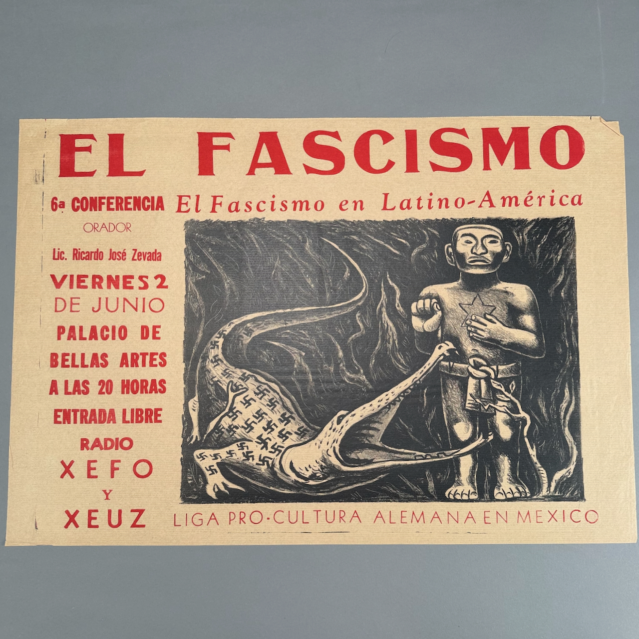 Home / ANTIQUE ESTATE AUCTION - FRI MARCH 27 AT 6 PM / LOT 229 UNFRAMED MEXICAN POLITICAL POSTER BY JOSE CHAVEZ MORADO, “EL FASCISMO”, LITHOGRAPH, ADVERTISING AN ANTI-FASCIST CONFERENCE IN MEXICO CITY, 1939. 18-1/2 X 26-1/2 LOT 229 UNFRAMED MEXICAN POLITICAL POSTER BY JOSE CHAVEZ MORADO, “EL FASCISMO”, LITHOGRAPH, ADVERTISING AN ANTI-FASCIST CONFERENCE IN MEXICO CITY, 1939. 18-1/2 X 26-1/2 Place a Bid Category: ANTIQUE ESTATE AUCTION - FRI MARCH 27 AT 6 PM Tag: auction Related products LOT 001 PAIR OF STERLING SILVER COLUMN CANDLESTICKS BY GORHAM MARKED A3207 EACH HAVING REMOVABLE BOBECHES. 10-1/4″(H) LOT 022 STEPHEN G. MANIATTY, ‘BUCKET OF POSIES’, OIL ON CANVAS, SIGNED LOWER RIGHT, FRAMED. 38 X 36 LOT 013 3 PCS OF STERLING SILVER: (1) OVAL DEEP SERVING DISH BY E. CALDWELL & CO, 10 X 6-1/2. (2) PORRINGER BY DOMINICK & HAFF, 7″. (3) PORRINGER BY RWM, 6″. 21.8 OZT LOT 014 PAIR OF STERLING SILVER 2 HANDLED PLATES BY WEBSTER MARKED ‘6613’, NO MONOGRAM, 10-1/2 AT WIDEST, 21.3 OZT