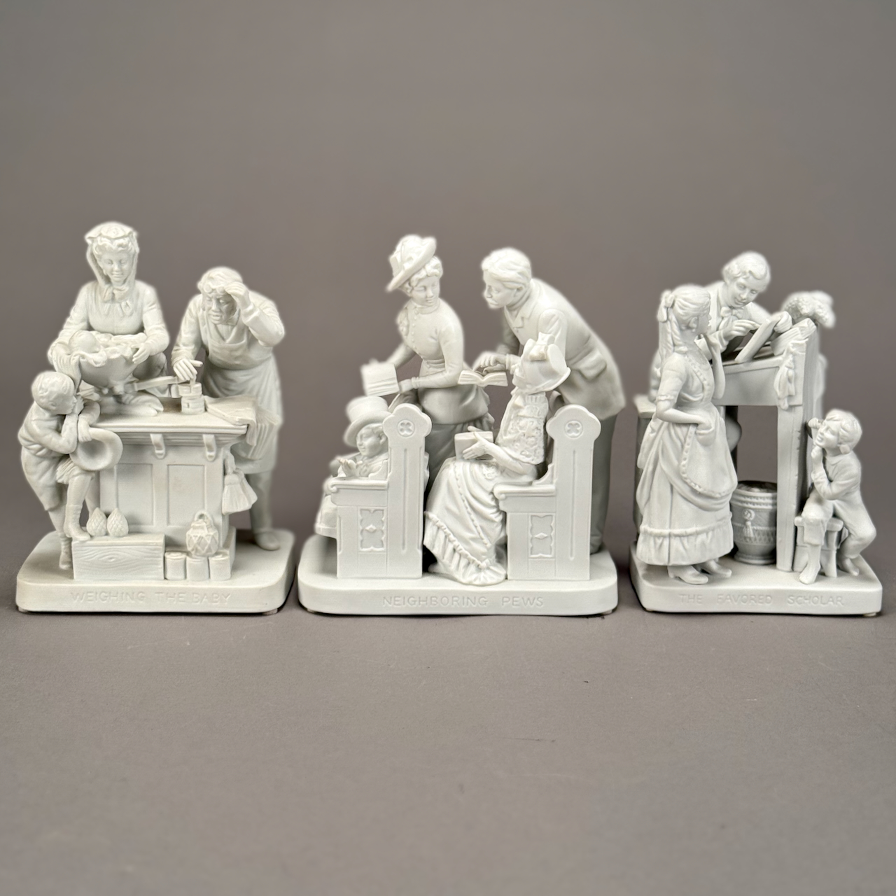 Home / OCTOBER 3 AT 6 PM / LOT 232 THREE REED & BARTON PORCELAIN MINIATURE JOHN ROGERS’ STATUES, “WEIGHING THE BABY”, “THE FAVORED SCHOLAR”, AND “NEIGHBORING PEWS”. TALLEST 8-1/2″ LOT 232 THREE REED & BARTON PORCELAIN MINIATURE JOHN ROGERS’ STATUES, “WEIGHING THE BABY”, “THE FAVORED SCHOLAR”, AND “NEIGHBORING PEWS”. TALLEST 8-1/2″ Place a Bid Categories: ANTIQUE AUCTION - FRI OCTOBER 3 AT 6 PM, OCTOBER 3 AT 6 PM Tag: auction Related products LOT 006 FINE PAIR OF FANCY STERLING SILVER CANDLESTICKS, SHEFFIELD, 1903-4 WITH MAKER’S MARK ‘HE LD’, 12″(H) LOT 017 CONTINENTAL SILVER (.800) DRESSER BOX MARKED ON BASE ‘BEUTHNER’. 3-1/4″(H), 5-1/2″(W) X 4″(D), 8 OZT LOT 018 COIN SILVER HANDLED CUP, PROBABLY FREEMAN & WALLIN, PHILADELPHIA, CIRCA 1850. 4″(H), 3.6 OZT. LOT 005 PAIR OF STERLING SILVER CANDELABRAS BY ARROWSMITH, WEIGHTED IN 2 PARTS. 14-1/2″(H) (1 REPAIRED)