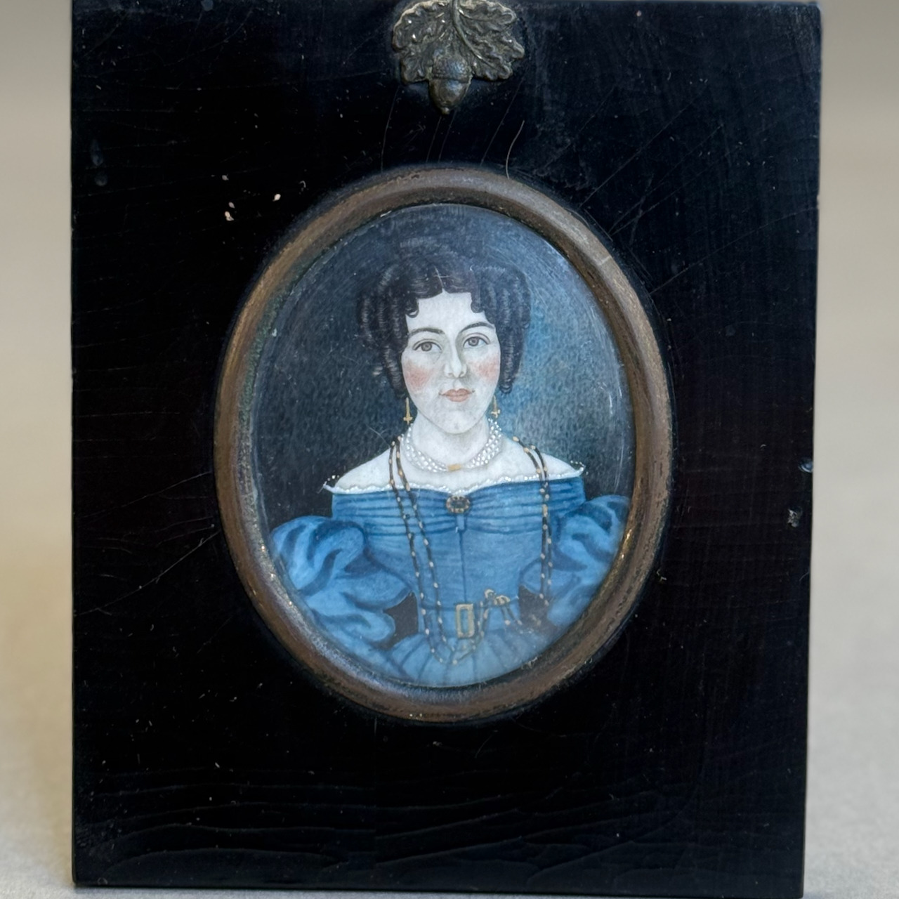Home / ANTIQUE ESTATE AUCTION - FRI FEBRUARY 20 AT 6 PM / LOT 234 FRAMED MINIATURE PORTRAIT OF WOMAN IN BLUE PUFFY ARM DRESS WEARING PEARLS AND GOLD EARRINGS. 2-3/4 X 2-1/4 SIGHT SIZE LOT 234 FRAMED MINIATURE PORTRAIT OF WOMAN IN BLUE PUFFY ARM DRESS WEARING PEARLS AND GOLD EARRINGS. 2-3/4 X 2-1/4 SIGHT SIZE Place a Bid Category: ANTIQUE ESTATE AUCTION - FRI FEBRUARY 20 AT 6 PM Tag: auction Related products LOT 008 11 STERLING SILVER PLATES BY GORHAM. 6″(D), 27.8 OZT LOT 010 2 STERLING SILVER SHAKERS, ONE 6″(H) WITH BLURRED ENGLISH HALLMARKS, THE OTHER 6-1/2″(H) MARKED STERLING. 9 OZT LOT 020 STERLING SILVER HINGED SQUARE BOX, LONDON, 1806, MAKERS MARK RH?, THE LID WITH A REPOUSSE SCENE OF 2 MEN PLAYING A BOARD GAME. 1-1/4″(H), 4″(W), 4″(D) LOT 003 PAIR OF STERLING SILVER PORRINGERS BY GEBELEIN, BOSTON. 7″(L), 4-3/4 BOWL, 12 OZT