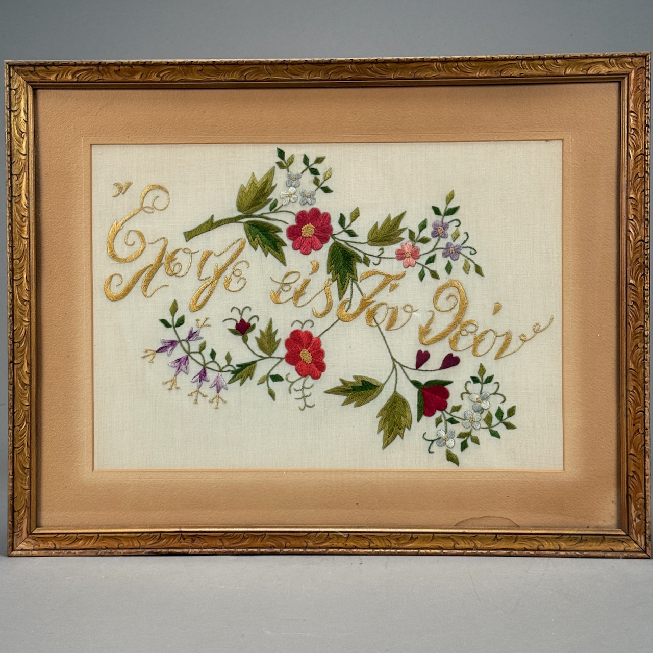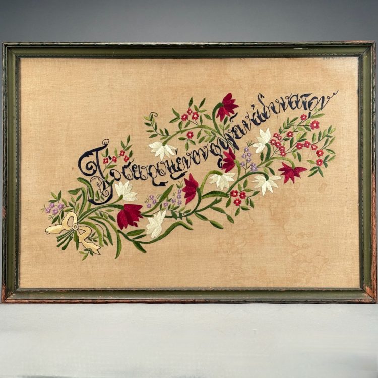 Home / OCTOBER 3 AT 6 PM / LOT 235 FOUR FRAMED NEEDLEWORKS WITH SCRIPT SAYING SURROUNDED BY FLOWERS. 22-1/2 X 33-1/2 SIGHT SIZE; 7-1/2 X 16-1/2 SIGHT SIZE; 12 X 17-1/4 SIGHT SIZE; 13-1/2 X 20-1/2 SIGHT SIZE LOT 235 FOUR FRAMED NEEDLEWORKS WITH SCRIPT SAYING SURROUNDED BY FLOWERS. 22-1/2 X 33-1/2 SIGHT SIZE; 7-1/2 X 16-1/2 SIGHT SIZE; 12 X 17-1/4 SIGHT SIZE; 13-1/2 X 20-1/2 SIGHT SIZE Place a Bid Categories: ANTIQUE AUCTION - FRI OCTOBER 3 AT 6 PM, OCTOBER 3 AT 6 PM Tag: auction Related products LOT 011 4 PCS OF ENGLISH STERLING SILVER. (1) EXPANDING TOAST RACK, 1901-1902, LONDON, 3″(H). (2) 3″ TEA CADDY SPOON, 1796-7, LONDON. (3) 7″ RETICULATED 2 HANDLED DISH, 1906-7, BIRMINGHAM. (4) 2″(H) TANKARD SHAPED MUSTARD WITH COBALT LINER, 1902-3, BIRMINGHAM. 12.6 OZT (W/O LINER) LOT 014 PAIR OF STERLING SILVER 2 HANDLED PLATES BY WEBSTER MARKED ‘6613’, NO MONOGRAM, 10-1/2 AT WIDEST, 21.3 OZT LOT 013 3 PCS OF STERLING SILVER: (1) OVAL DEEP SERVING DISH BY E. CALDWELL & CO, 10 X 6-1/2. (2) PORRINGER BY DOMINICK & HAFF, 7″. (3) PORRINGER BY RWM, 6″. 21.8 OZT LOT 004 133 PC STERLING SILVER FLATWARE SET IN THE “KING PATTERN. 190 OZT (EXCLUDING 12 KNIVES), MONOGRAMMED