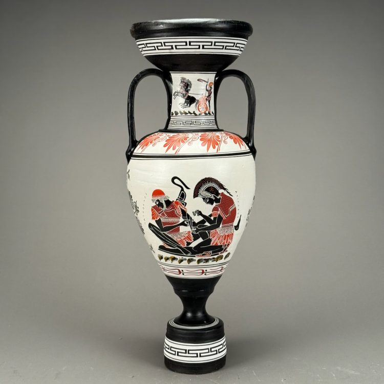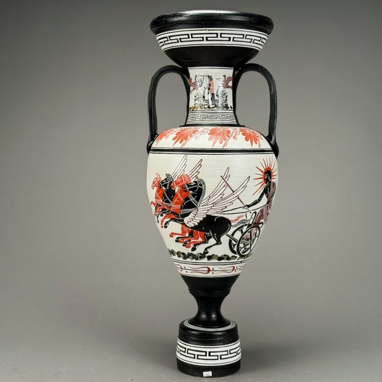 Home / ANTIQUE AUCTION - FRI OCTOBER 3 AT 6 PM / LOT 236 LARGE GREEK CONTEMPORARY POTTERY VASE WITH GREEK SCENES AROUND BODY. 31″(H) LOT 236 LARGE GREEK CONTEMPORARY POTTERY VASE WITH GREEK SCENES AROUND BODY. 31″(H) Place a Bid Categories: ANTIQUE AUCTION - FRI OCTOBER 3 AT 6 PM, OCTOBER 3 AT 6 PM Tag: auction Related products LOT 022 STEPHEN G. MANIATTY, ‘BUCKET OF POSIES’, OIL ON CANVAS, SIGNED LOWER RIGHT, FRAMED. 38 X 36 LOT 004 133 PC STERLING SILVER FLATWARE SET IN THE “KING PATTERN. 190 OZT (EXCLUDING 12 KNIVES), MONOGRAMMED LOT 012 2 SMALL STERLING SILVER TRAYS. (1) 6″ SQUARE BY DOMINICK & HAFF (2) 7-1/2 X 5-1/2 OVAL FOOTED TRAY BY J.E. CALDWELL & CO, BOTH MONOGRAMMED. 11.7 OZT LOT 007 FIXED HANDLED STERLING SILVER LOW BASKET MARKED BIGELOW, KENNARD & CO. 5-1/2″(H), 10-1/2″(D), 9.8 OZT