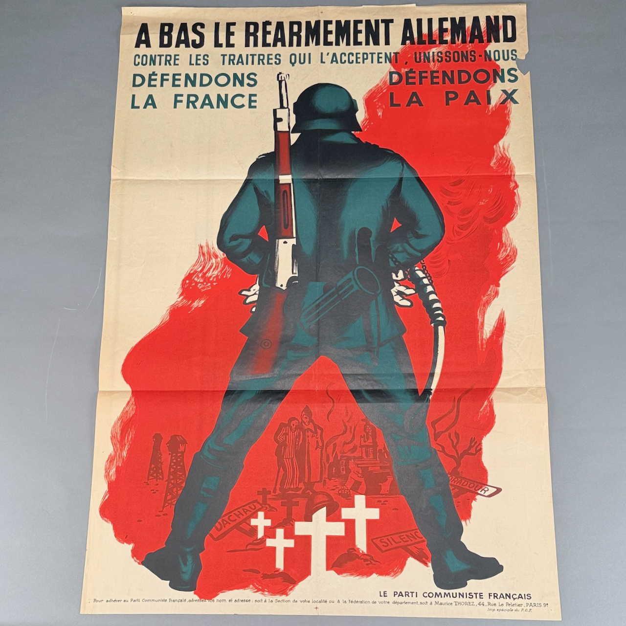 Home / ANTIQUE ESTATE AUCTION - FRI MARCH 27 AT 6 PM / LOT 236 UNFRAMED FRENCH POLITICAL POSTER, DOWN WITH GERMAN REARMAMENT, FRENCH COMMUNIST PARTY. 47 X 31-1/2 LOT 236 UNFRAMED FRENCH POLITICAL POSTER, DOWN WITH GERMAN REARMAMENT, FRENCH COMMUNIST PARTY. 47 X 31-1/2 Place a Bid Category: ANTIQUE ESTATE AUCTION - FRI MARCH 27 AT 6 PM Tag: auction Related products LOT 020 STERLING SILVER HINGED SQUARE BOX, LONDON, 1806, MAKERS MARK RH?, THE LID WITH A REPOUSSE SCENE OF 2 MEN PLAYING A BOARD GAME. 1-1/4″(H), 4″(W), 4″(D) LOT 022 STEPHEN G. MANIATTY, ‘BUCKET OF POSIES’, OIL ON CANVAS, SIGNED LOWER RIGHT, FRAMED. 38 X 36 LOT 004 133 PC STERLING SILVER FLATWARE SET IN THE “KING PATTERN. 190 OZT (EXCLUDING 12 KNIVES), MONOGRAMMED LOT 018 COIN SILVER HANDLED CUP, PROBABLY FREEMAN & WALLIN, PHILADELPHIA, CIRCA 1850. 4″(H), 3.6 OZT.
