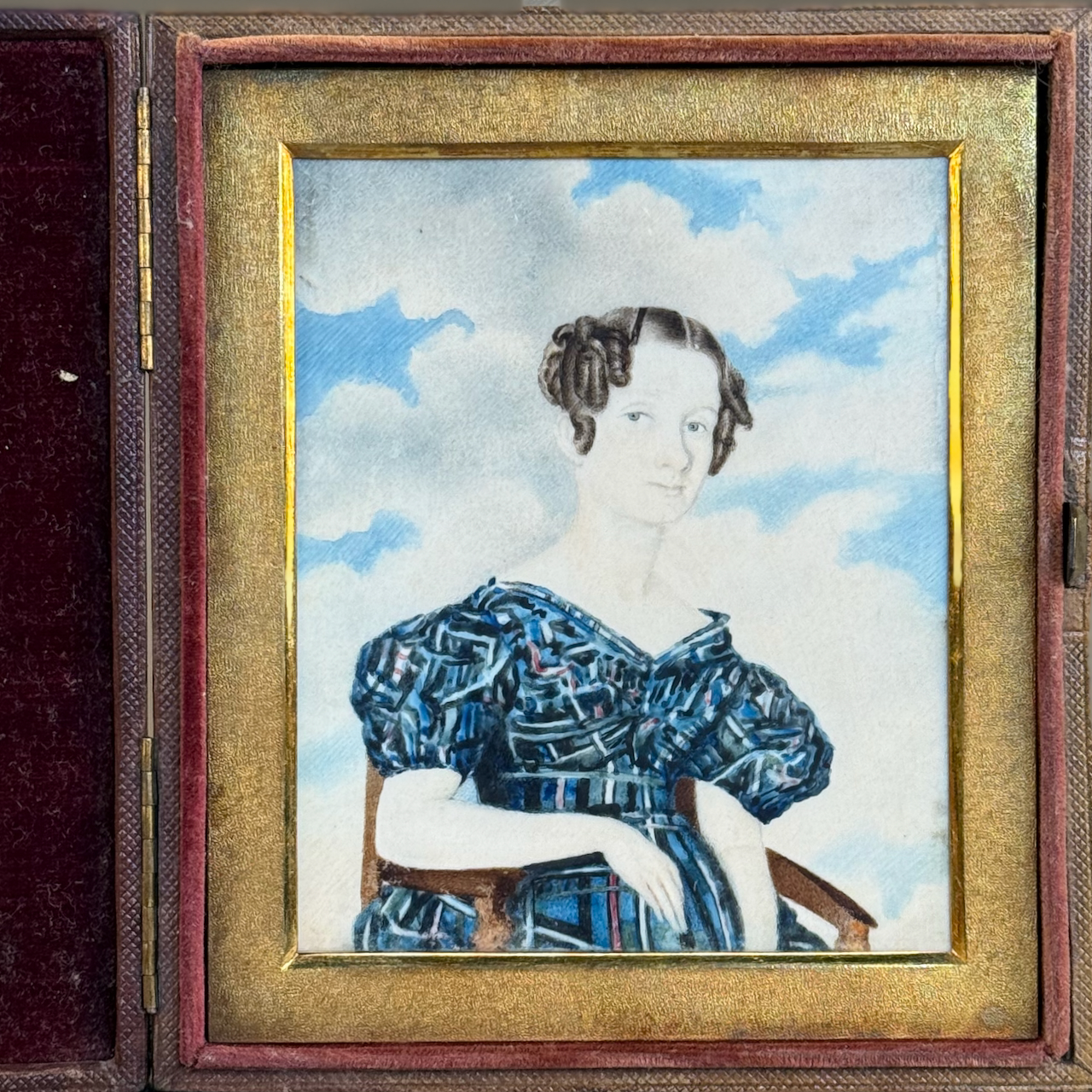 Home / ANTIQUE ESTATE AUCTION - FRI FEBRUARY 20 AT 6 PM / LOT 237 MINIATURE OF YOUNG WOMAN SEATED HAVING BROWN CURLY HAIR AND BLUE DRESS HOUSED IN A COVERED CASE. 4-1/4 X 3-1/2 SIGHT SIZE LOT 237 MINIATURE OF YOUNG WOMAN SEATED HAVING BROWN CURLY HAIR AND BLUE DRESS HOUSED IN A COVERED CASE. 4-1/4 X 3-1/2 SIGHT SIZE Place a Bid Category: ANTIQUE ESTATE AUCTION - FRI FEBRUARY 20 AT 6 PM Tag: auction Related products LOT 017 CONTINENTAL SILVER (.800) DRESSER BOX MARKED ON BASE ‘BEUTHNER’. 3-1/4″(H), 5-1/2″(W) X 4″(D), 8 OZT LOT 006 FINE PAIR OF FANCY STERLING SILVER CANDLESTICKS, SHEFFIELD, 1903-4 WITH MAKER’S MARK ‘HE LD’, 12″(H) LOT 010 2 STERLING SILVER SHAKERS, ONE 6″(H) WITH BLURRED ENGLISH HALLMARKS, THE OTHER 6-1/2″(H) MARKED STERLING. 9 OZT LOT 014 PAIR OF STERLING SILVER 2 HANDLED PLATES BY WEBSTER MARKED ‘6613’, NO MONOGRAM, 10-1/2 AT WIDEST, 21.3 OZT