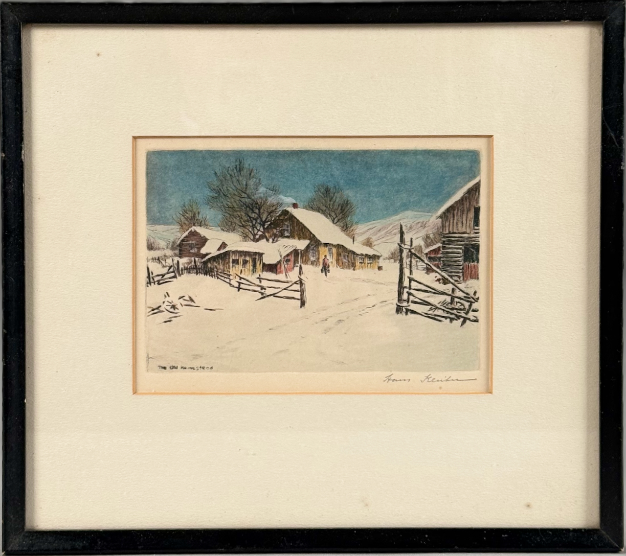 Home / ANTIQUE ESTATE AUCTION - FRI MARCH 27 AT 6 PM / LOT 247 HANS KLEIBER, “THE OLD HOMESTEAD”, ETCHING WITH COLOR, SIGNED LOWER RIGHT, FRAMED. 4-1/2 X 6-1/4 SIGHT SIZE LOT 247 HANS KLEIBER, “THE OLD HOMESTEAD”, ETCHING WITH COLOR, SIGNED LOWER RIGHT, FRAMED. 4-1/2 X 6-1/4 SIGHT SIZE Place a Bid Category: ANTIQUE ESTATE AUCTION - FRI MARCH 27 AT 6 PM Tag: auction Related products LOT 019 COIN SILVER MUG BY C. BARD & SON, PHILADELPHIA, PA, CIRCA 1850 INSCRIBED ‘ANNA CRAIG FULTON’, THE BODY HAVING REPOUSSE FLOWERS. 3-1/2″(H), 3.3 OZT LOT 018 COIN SILVER HANDLED CUP, PROBABLY FREEMAN & WALLIN, PHILADELPHIA, CIRCA 1850. 4″(H), 3.6 OZT. LOT 015 42 PC STERLING FLATWARE SET BY LUNT IN THE ‘WILLIAM & MARY’ PATTERN, NO MONOGRAM. 34.5 OZT (W/O 12 KNIVES) LOT 013 3 PCS OF STERLING SILVER: (1) OVAL DEEP SERVING DISH BY E. CALDWELL & CO, 10 X 6-1/2. (2) PORRINGER BY DOMINICK & HAFF, 7″. (3) PORRINGER BY RWM, 6″. 21.8 OZT
