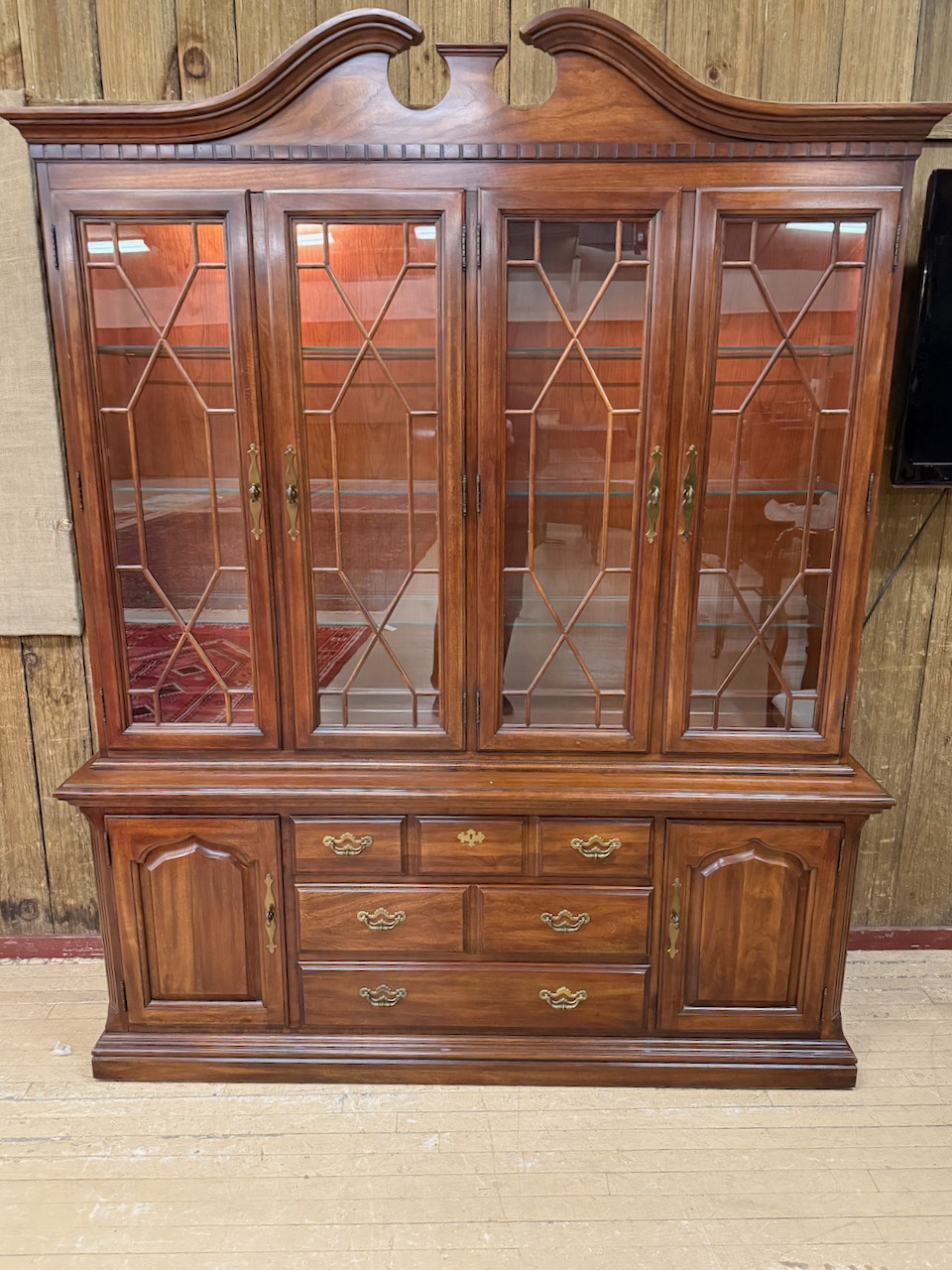 Home / ANTIQUE ESTATE AUCTION - FRI JANUARY 30 AT 6 PM / LOT 257 THOMASVILLE 2-PART CHERRY BREAKFRONT, 4 DOORS ABOVE WITH GLASS SHELVES, 3 DRAWERS FLANKED BY DOORS WITH RAISED PANELS. 84-1/2″(H), 68″(W), 18″(D) LOT 257 THOMASVILLE 2-PART CHERRY BREAKFRONT, 4 DOORS ABOVE WITH GLASS SHELVES, 3 DRAWERS FLANKED BY DOORS WITH RAISED PANELS. 84-1/2″(H), 68″(W), 18″(D) Place a Bid Category: ANTIQUE ESTATE AUCTION - FRI JANUARY 30 AT 6 PM Tag: auction Related products LOT 012 2 SMALL STERLING SILVER TRAYS. (1) 6″ SQUARE BY DOMINICK & HAFF (2) 7-1/2 X 5-1/2 OVAL FOOTED TRAY BY J.E. CALDWELL & CO, BOTH MONOGRAMMED. 11.7 OZT LOT 017 CONTINENTAL SILVER (.800) DRESSER BOX MARKED ON BASE ‘BEUTHNER’. 3-1/4″(H), 5-1/2″(W) X 4″(D), 8 OZT LOT 002 3 PC STERLING SILVER TEA SET BY GORHAM CONSISTING OF 10″ TEAPOT (2441), 6-1/2″ CREAMER (2444), 6″ COVERED SUGAR (2443), 45 OZT LOT 023 STEPHEN G. MANIATTY, ‘SAWMILL’, OIL ON CANVAS, SIGNED LOWER RIGHT, FRAMED WITH AN AWARD PLAQUE “GRUMBACHER ARTISTS MATERIAL AWARD/GRAND NATIONAL EXHIBITION/NEW YORK CITY – 1965”. 20 X 30