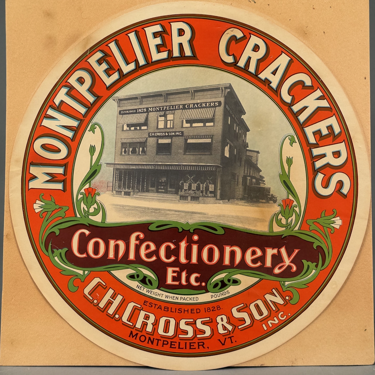 Home / OCTOBER 3 AT 6 PM / LOT 258 UNFRAMED CRACKER BARREL LABEL FOR “MONTPELIER CRACKERS”, C.H. CROSS & SON, MONTPELIER, VT. 16-1/4″(D) LOT 258 UNFRAMED CRACKER BARREL LABEL FOR “MONTPELIER CRACKERS”, C.H. CROSS & SON, MONTPELIER, VT. 16-1/4″(D) Place a Bid Categories: ANTIQUE AUCTION - FRI OCTOBER 3 AT 6 PM, OCTOBER 3 AT 6 PM Tag: auction Related products LOT 010 2 STERLING SILVER SHAKERS, ONE 6″(H) WITH BLURRED ENGLISH HALLMARKS, THE OTHER 6-1/2″(H) MARKED STERLING. 9 OZT LOT 019 COIN SILVER MUG BY C. BARD & SON, PHILADELPHIA, PA, CIRCA 1850 INSCRIBED ‘ANNA CRAIG FULTON’, THE BODY HAVING REPOUSSE FLOWERS. 3-1/2″(H), 3.3 OZT LOT 014 PAIR OF STERLING SILVER 2 HANDLED PLATES BY WEBSTER MARKED ‘6613’, NO MONOGRAM, 10-1/2 AT WIDEST, 21.3 OZT LOT 005 PAIR OF STERLING SILVER CANDELABRAS BY ARROWSMITH, WEIGHTED IN 2 PARTS. 14-1/2″(H) (1 REPAIRED)