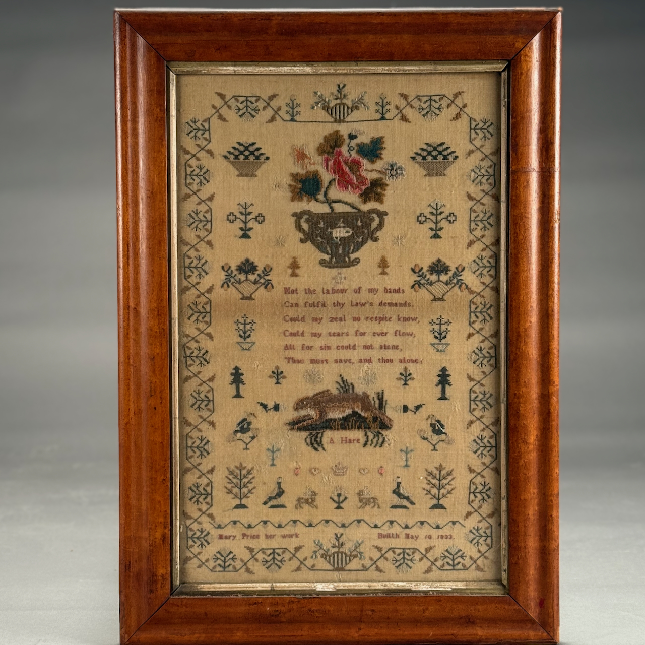 Home / ANTIQUE ESTATE AUCTION - FRI FEBRUARY 20 AT 6 PM / LOT 259 FRAMED 19TH C. NEEDLEWORK SAMPLER BY MARY PRICE, MAY 10, 1833, WITH VERSE, POT OF FLOWERS, RABBIT, ANIMALS, BIRDS AND TREES. 18-3/4 X 11-3/4 SIGHT SIZE LOT 259 FRAMED 19TH C. NEEDLEWORK SAMPLER BY MARY PRICE, MAY 10, 1833, WITH VERSE, POT OF FLOWERS, RABBIT, ANIMALS, BIRDS AND TREES. 18-3/4 X 11-3/4 SIGHT SIZE Place a Bid Category: ANTIQUE ESTATE AUCTION - FRI FEBRUARY 20 AT 6 PM Tag: auction Related products LOT 012 2 SMALL STERLING SILVER TRAYS. (1) 6″ SQUARE BY DOMINICK & HAFF (2) 7-1/2 X 5-1/2 OVAL FOOTED TRAY BY J.E. CALDWELL & CO, BOTH MONOGRAMMED. 11.7 OZT LOT 008 11 STERLING SILVER PLATES BY GORHAM. 6″(D), 27.8 OZT LOT 024 STEPHEN G. MANIATTY, ‘OCTOBERS GIFT’, OIL ON CANVAS, SIGNED LOWER RIGHT, FRAMED. 34 X 25 LOT 013 3 PCS OF STERLING SILVER: (1) OVAL DEEP SERVING DISH BY E. CALDWELL & CO, 10 X 6-1/2. (2) PORRINGER BY DOMINICK & HAFF, 7″. (3) PORRINGER BY RWM, 6″. 21.8 OZT