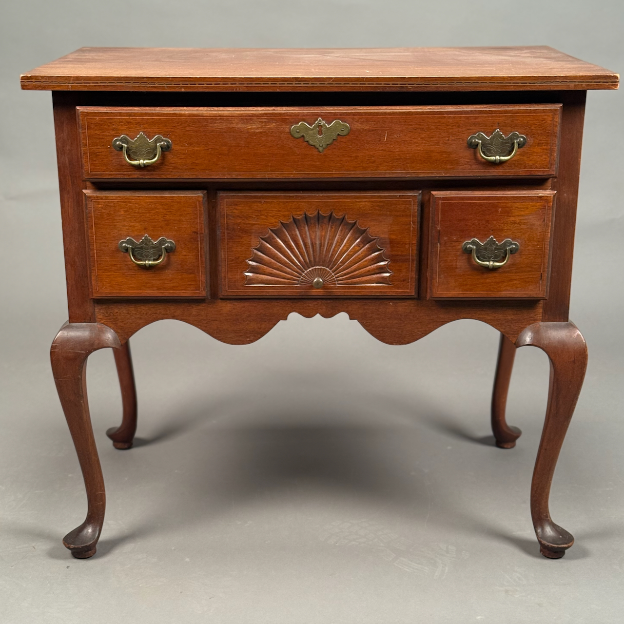 Home / ANTIQUE AUCTION - FRI NOVEMBER 7 AT 6 PM / LOT 268 CUSTOM QUEEN ANNE MAHOGANY REPRODUCTION LOWBOY WITH FAN CARVING 30”(H) 33”(W) 21”(D) LOT 268 CUSTOM QUEEN ANNE MAHOGANY REPRODUCTION LOWBOY WITH FAN CARVING 30”(H) 33”(W) 21”(D) Place a Bid Category: ANTIQUE AUCTION - FRI NOVEMBER 7 AT 6 PM Tag: auction Related products LOT 007 FIXED HANDLED STERLING SILVER LOW BASKET MARKED BIGELOW, KENNARD & CO. 5-1/2″(H), 10-1/2″(D), 9.8 OZT LOT 011 4 PCS OF ENGLISH STERLING SILVER. (1) EXPANDING TOAST RACK, 1901-1902, LONDON, 3″(H). (2) 3″ TEA CADDY SPOON, 1796-7, LONDON. (3) 7″ RETICULATED 2 HANDLED DISH, 1906-7, BIRMINGHAM. (4) 2″(H) TANKARD SHAPED MUSTARD WITH COBALT LINER, 1902-3, BIRMINGHAM. 12.6 OZT (W/O LINER) LOT 008 11 STERLING SILVER PLATES BY GORHAM. 6″(D), 27.8 OZT LOT 020 STERLING SILVER HINGED SQUARE BOX, LONDON, 1806, MAKERS MARK RH?, THE LID WITH A REPOUSSE SCENE OF 2 MEN PLAYING A BOARD GAME. 1-1/4″(H), 4″(W), 4″(D)