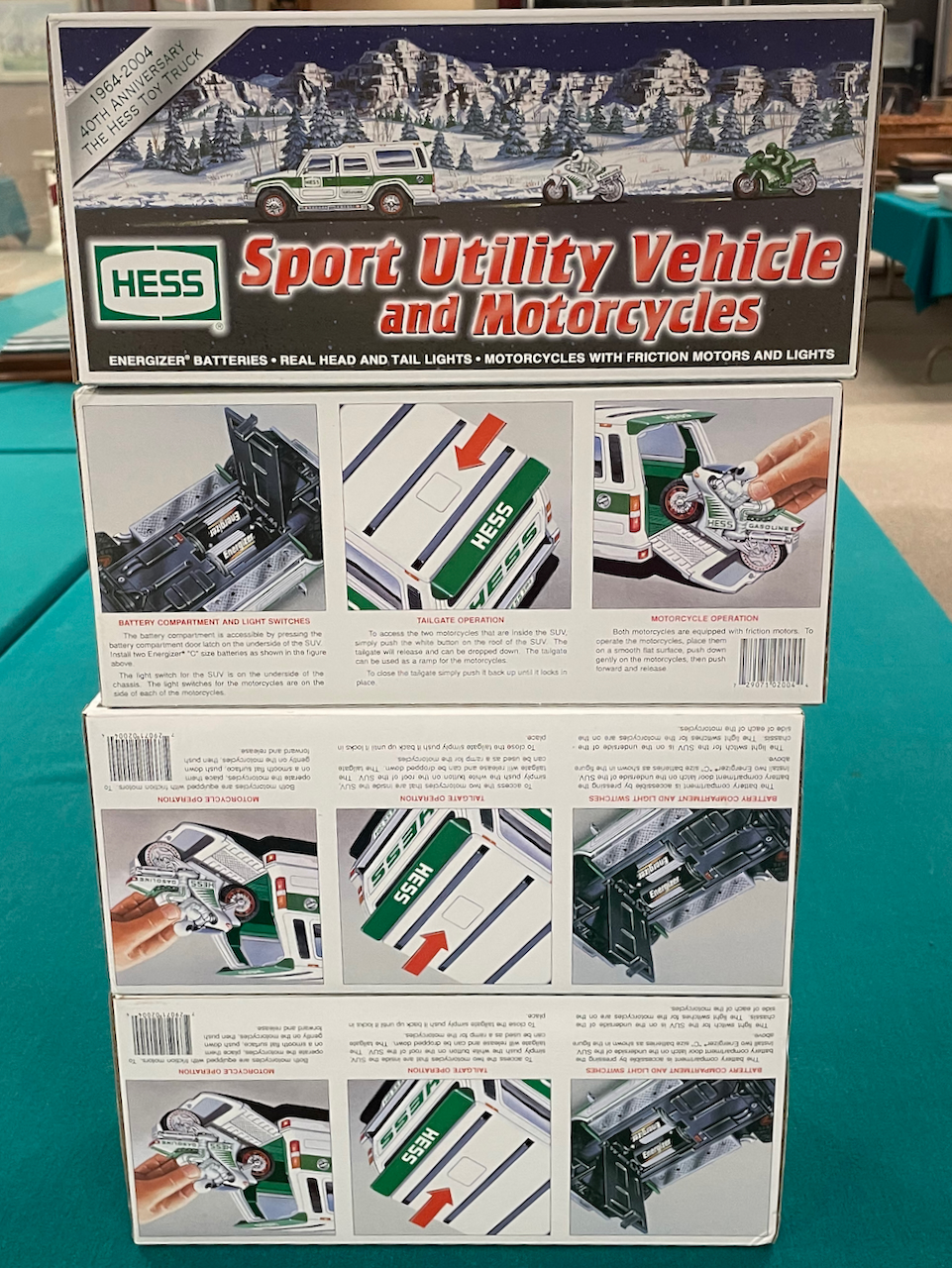 Home / ANTIQUE ESTATE AUCTION - FRI DECEMBER 12 AT 6 PM / LOT 274 FOUR 2004 HESS SPORTS UTILITY VEHICLE & MOTORCYCLE IN BOX LOT 274 FOUR 2004 HESS SPORTS UTILITY VEHICLE & MOTORCYCLE IN BOX Place a Bid Category: ANTIQUE ESTATE AUCTION - FRI DECEMBER 12 AT 6 PM Tag: auction Related products LOT 002 3 PC STERLING SILVER TEA SET BY GORHAM CONSISTING OF 10″ TEAPOT (2441), 6-1/2″ CREAMER (2444), 6″ COVERED SUGAR (2443), 45 OZT LOT 006 FINE PAIR OF FANCY STERLING SILVER CANDLESTICKS, SHEFFIELD, 1903-4 WITH MAKER’S MARK ‘HE LD’, 12″(H) LOT 019 COIN SILVER MUG BY C. BARD & SON, PHILADELPHIA, PA, CIRCA 1850 INSCRIBED ‘ANNA CRAIG FULTON’, THE BODY HAVING REPOUSSE FLOWERS. 3-1/2″(H), 3.3 OZT LOT 009 48 PC STERLING SILVER FLATWARE SET IN THE “KING GEORGE” PATTERN BY GORHAM, 57 OZT (WITHOUT 16 KNIVES) MONOGRAMMED