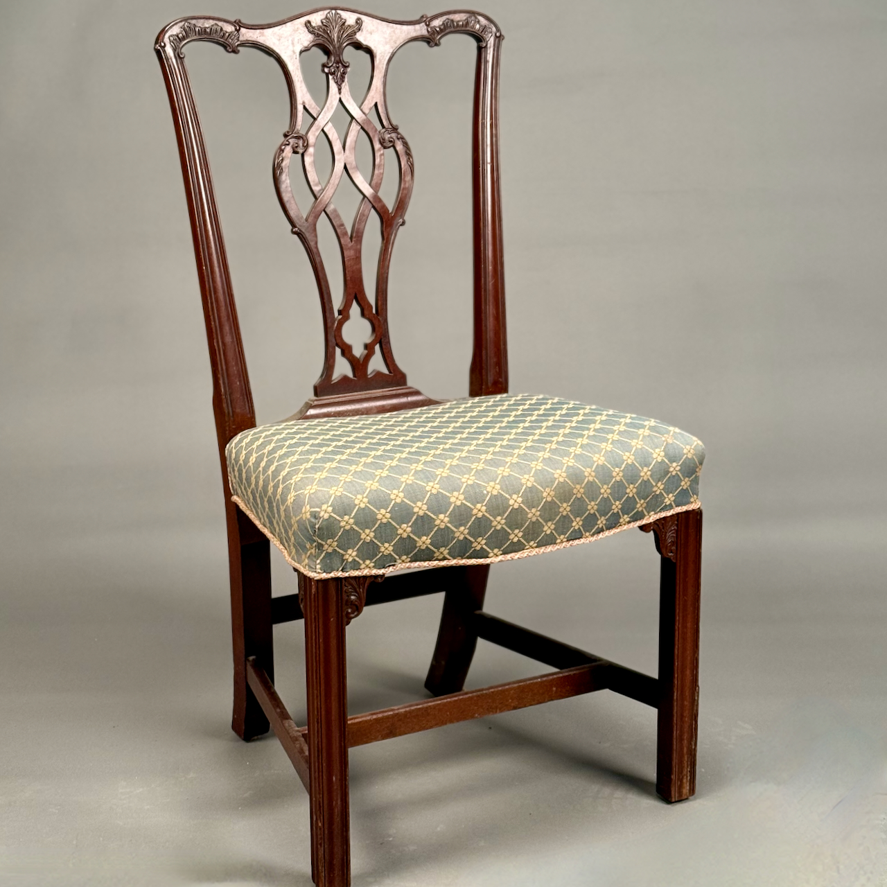 Home / ANTIQUE ESTATE AUCTION - FRI MARCH 27 AT 6 PM / LOT 277 CHIPPENDALE SIDE CHAIR WITH OVER UPHOLSTERED SEAT AND PIERCED CARVED BACK SPLAT. 38″(H) LOT 277 CHIPPENDALE SIDE CHAIR WITH OVER UPHOLSTERED SEAT AND PIERCED CARVED BACK SPLAT. 38″(H) Place a Bid Category: ANTIQUE ESTATE AUCTION - FRI MARCH 27 AT 6 PM Tag: auction Related products LOT 004 133 PC STERLING SILVER FLATWARE SET IN THE “KING PATTERN. 190 OZT (EXCLUDING 12 KNIVES), MONOGRAMMED LOT 022 STEPHEN G. MANIATTY, ‘BUCKET OF POSIES’, OIL ON CANVAS, SIGNED LOWER RIGHT, FRAMED. 38 X 36 LOT 013 3 PCS OF STERLING SILVER: (1) OVAL DEEP SERVING DISH BY E. CALDWELL & CO, 10 X 6-1/2. (2) PORRINGER BY DOMINICK & HAFF, 7″. (3) PORRINGER BY RWM, 6″. 21.8 OZT LOT 016 6 PCS OF STERLING SILVER: (1) 6″(D) PLATE BY TOWLE. (2) 3-1/2 FOOTED CREAMER BY POOLE. (3) 4″(D) FOOTED BOWL BY SHREVE, CRUMP & LOW CO (4) 7″(L) FOOTED GRAVY BY J.E. CALDWELL & CO (5) 4″ CREAMER BY DOMINICK & HAFF (6) 6-3/4″(W) DISH BY TOWLE. 25.2 OZT