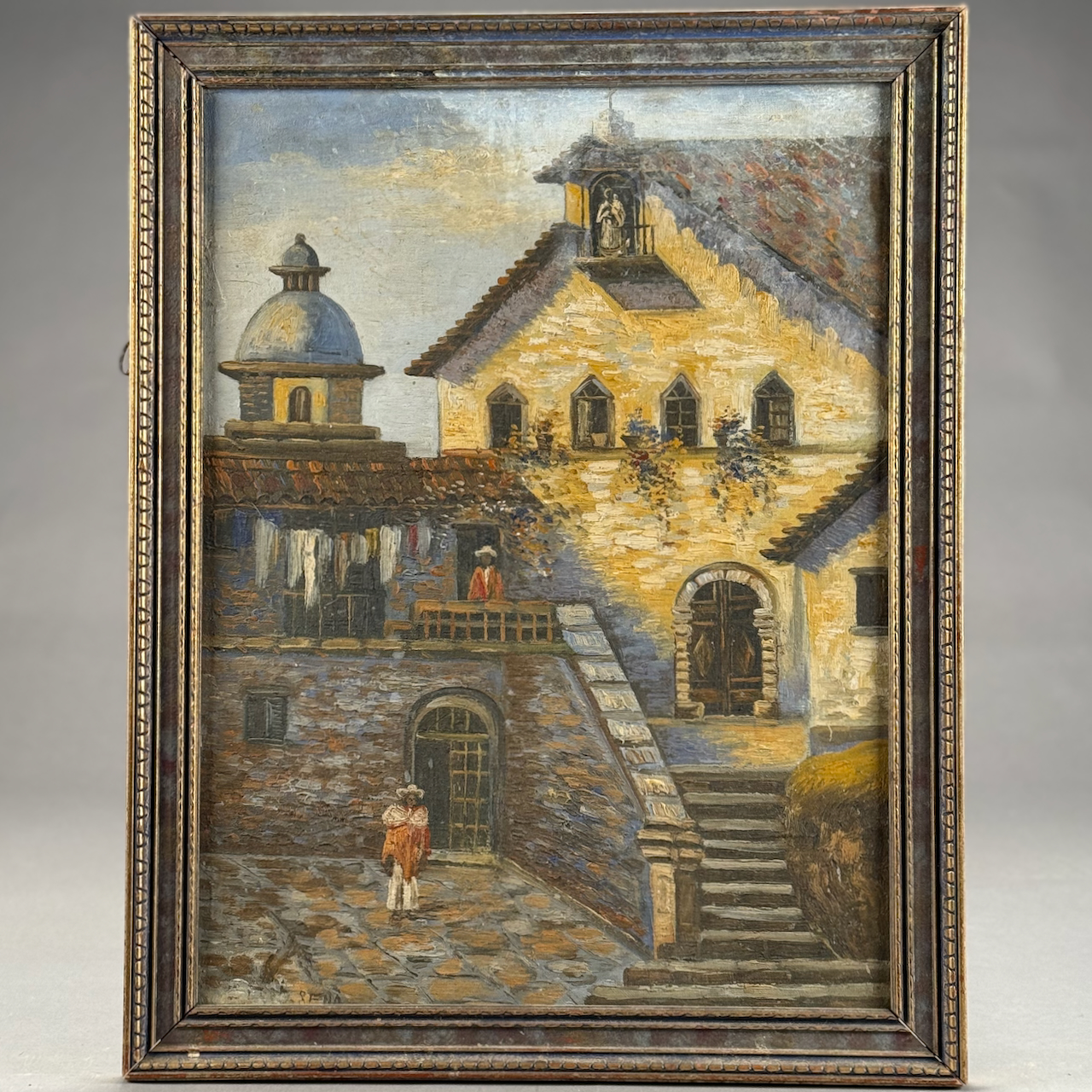Home / ANTIQUE ESTATE AUCTION - FRI JANUARY 30 AT 6 PM / LOT 279 SIGNED, CHURCH COURTYARD, OIL ON BOARD, SIGNED ILLEGIBLY LOWER LEFT, FRAMED. 19-1/2 X 14-3/4 LOT 279 SIGNED, CHURCH COURTYARD, OIL ON BOARD, SIGNED ILLEGIBLY LOWER LEFT, FRAMED. 19-1/2 X 14-3/4 Place a Bid Category: ANTIQUE ESTATE AUCTION - FRI JANUARY 30 AT 6 PM Tag: auction Related products LOT 012 2 SMALL STERLING SILVER TRAYS. (1) 6″ SQUARE BY DOMINICK & HAFF (2) 7-1/2 X 5-1/2 OVAL FOOTED TRAY BY J.E. CALDWELL & CO, BOTH MONOGRAMMED. 11.7 OZT LOT 017 CONTINENTAL SILVER (.800) DRESSER BOX MARKED ON BASE ‘BEUTHNER’. 3-1/4″(H), 5-1/2″(W) X 4″(D), 8 OZT LOT 006 FINE PAIR OF FANCY STERLING SILVER CANDLESTICKS, SHEFFIELD, 1903-4 WITH MAKER’S MARK ‘HE LD’, 12″(H) LOT 005 PAIR OF STERLING SILVER CANDELABRAS BY ARROWSMITH, WEIGHTED IN 2 PARTS. 14-1/2″(H) (1 REPAIRED)