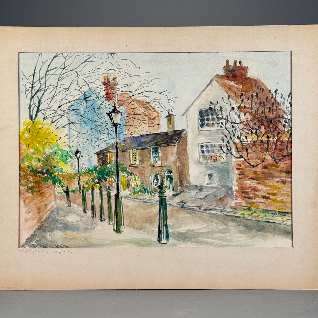 Home / ESTATE COLLECTION OF AMERICAN ARTIST JACK PAUL MAROON DECEMBER 19 AT 6PM / LOT 280 “FORSYTHIAS” WATERCOLOR, SIGNED, 12 X 16-1/2 SIGHT SIZE, IN MAT LOT 280 “FORSYTHIAS” WATERCOLOR, SIGNED, 12 X 16-1/2 SIGHT SIZE, IN MAT Place a Bid Category: ESTATE COLLECTION OF AMERICAN ARTIST JACK PAUL MAROON DECEMBER 19 AT 6PM Tag: auction Related products LOT 002 3 PC STERLING SILVER TEA SET BY GORHAM CONSISTING OF 10″ TEAPOT (2441), 6-1/2″ CREAMER (2444), 6″ COVERED SUGAR (2443), 45 OZT LOT 001 PAIR OF STERLING SILVER COLUMN CANDLESTICKS BY GORHAM MARKED A3207 EACH HAVING REMOVABLE BOBECHES. 10-1/4″(H) LOT 022 STEPHEN G. MANIATTY, ‘BUCKET OF POSIES’, OIL ON CANVAS, SIGNED LOWER RIGHT, FRAMED. 38 X 36 LOT 007 FIXED HANDLED STERLING SILVER LOW BASKET MARKED BIGELOW, KENNARD & CO. 5-1/2″(H), 10-1/2″(D), 9.8 OZT