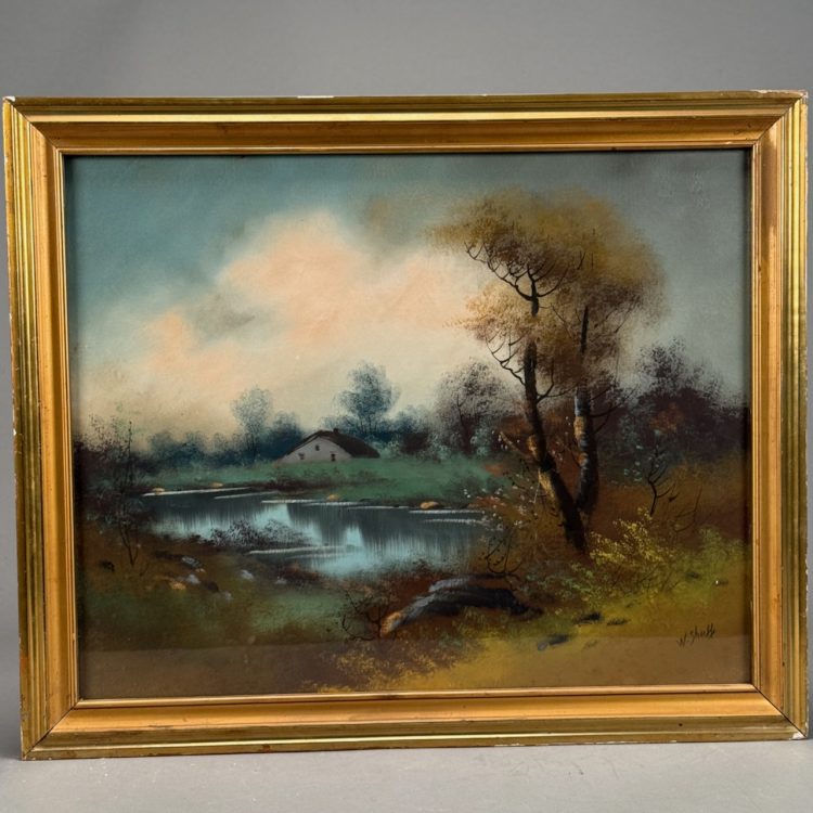 Home / ANTIQUE AUCTION - FRI OCTOBER 3 AT 6 PM / LOT 294 W. SHETT?, HOUSE NEXT TO THE POND, PASTEL, SIGNED LOWER RIGHT, FRAMED. 15-1/2 X 19-1/2 SIGHT SIZE LOT 294 W. SHETT?, HOUSE NEXT TO THE POND, PASTEL, SIGNED LOWER RIGHT, FRAMED. 15-1/2 X 19-1/2 SIGHT SIZE Place a Bid Categories: ANTIQUE AUCTION - FRI OCTOBER 3 AT 6 PM, OCTOBER 3 AT 6 PM Tag: auction Related products LOT 020 STERLING SILVER HINGED SQUARE BOX, LONDON, 1806, MAKERS MARK RH?, THE LID WITH A REPOUSSE SCENE OF 2 MEN PLAYING A BOARD GAME. 1-1/4″(H), 4″(W), 4″(D) LOT 006 FINE PAIR OF FANCY STERLING SILVER CANDLESTICKS, SHEFFIELD, 1903-4 WITH MAKER’S MARK ‘HE LD’, 12″(H) LOT 005 PAIR OF STERLING SILVER CANDELABRAS BY ARROWSMITH, WEIGHTED IN 2 PARTS. 14-1/2″(H) (1 REPAIRED) LOT 011 4 PCS OF ENGLISH STERLING SILVER. (1) EXPANDING TOAST RACK, 1901-1902, LONDON, 3″(H). (2) 3″ TEA CADDY SPOON, 1796-7, LONDON. (3) 7″ RETICULATED 2 HANDLED DISH, 1906-7, BIRMINGHAM. (4) 2″(H) TANKARD SHAPED MUSTARD WITH COBALT LINER, 1902-3, BIRMINGHAM. 12.6 OZT (W/O LINER)