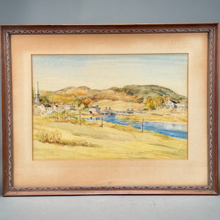 Home / ANTIQUE AUCTION - FRI OCTOBER 3 AT 6 PM / LOT 327 A.H. PATTERSON, NEW ENGLAND VILLAGE, WATERCOLOR, SIGNED LOWER RIGHT, DATED 1947, FRAMED. 9-1/2 X 14 SIGHT SIZE LOT 327 A.H. PATTERSON, NEW ENGLAND VILLAGE, WATERCOLOR, SIGNED LOWER RIGHT, DATED 1947, FRAMED. 9-1/2 X 14 SIGHT SIZE Place a Bid Categories: ANTIQUE AUCTION - FRI OCTOBER 3 AT 6 PM, OCTOBER 3 AT 6 PM Tag: auction Related products LOT 016 6 PCS OF STERLING SILVER: (1) 6″(D) PLATE BY TOWLE. (2) 3-1/2 FOOTED CREAMER BY POOLE. (3) 4″(D) FOOTED BOWL BY SHREVE, CRUMP & LOW CO (4) 7″(L) FOOTED GRAVY BY J.E. CALDWELL & CO (5) 4″ CREAMER BY DOMINICK & HAFF (6) 6-3/4″(W) DISH BY TOWLE. 25.2 OZT LOT 004 133 PC STERLING SILVER FLATWARE SET IN THE “KING PATTERN. 190 OZT (EXCLUDING 12 KNIVES), MONOGRAMMED LOT 007 FIXED HANDLED STERLING SILVER LOW BASKET MARKED BIGELOW, KENNARD & CO. 5-1/2″(H), 10-1/2″(D), 9.8 OZT LOT 005 PAIR OF STERLING SILVER CANDELABRAS BY ARROWSMITH, WEIGHTED IN 2 PARTS. 14-1/2″(H) (1 REPAIRED)