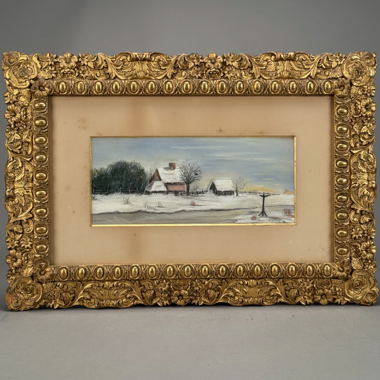 Home / ANTIQUE AUCTION - FRI OCTOBER 3 AT 6 PM / LOT 331 A.E. GEORGE, WINTER HOMESTEAD, PASTEL, SIGNED LOWER RIGHT AND DATED ’86, FRAMED. 6 X 14 SIGHT SIZE LOT 331 A.E. GEORGE, WINTER HOMESTEAD, PASTEL, SIGNED LOWER RIGHT AND DATED ’86, FRAMED. 6 X 14 SIGHT SIZE Place a Bid Categories: ANTIQUE AUCTION - FRI OCTOBER 3 AT 6 PM, OCTOBER 3 AT 6 PM Tag: auction Related products LOT 018 COIN SILVER HANDLED CUP, PROBABLY FREEMAN & WALLIN, PHILADELPHIA, CIRCA 1850. 4″(H), 3.6 OZT. LOT 019 COIN SILVER MUG BY C. BARD & SON, PHILADELPHIA, PA, CIRCA 1850 INSCRIBED ‘ANNA CRAIG FULTON’, THE BODY HAVING REPOUSSE FLOWERS. 3-1/2″(H), 3.3 OZT LOT 020 STERLING SILVER HINGED SQUARE BOX, LONDON, 1806, MAKERS MARK RH?, THE LID WITH A REPOUSSE SCENE OF 2 MEN PLAYING A BOARD GAME. 1-1/4″(H), 4″(W), 4″(D) LOT 001 PAIR OF STERLING SILVER COLUMN CANDLESTICKS BY GORHAM MARKED A3207 EACH HAVING REMOVABLE BOBECHES. 10-1/4″(H)