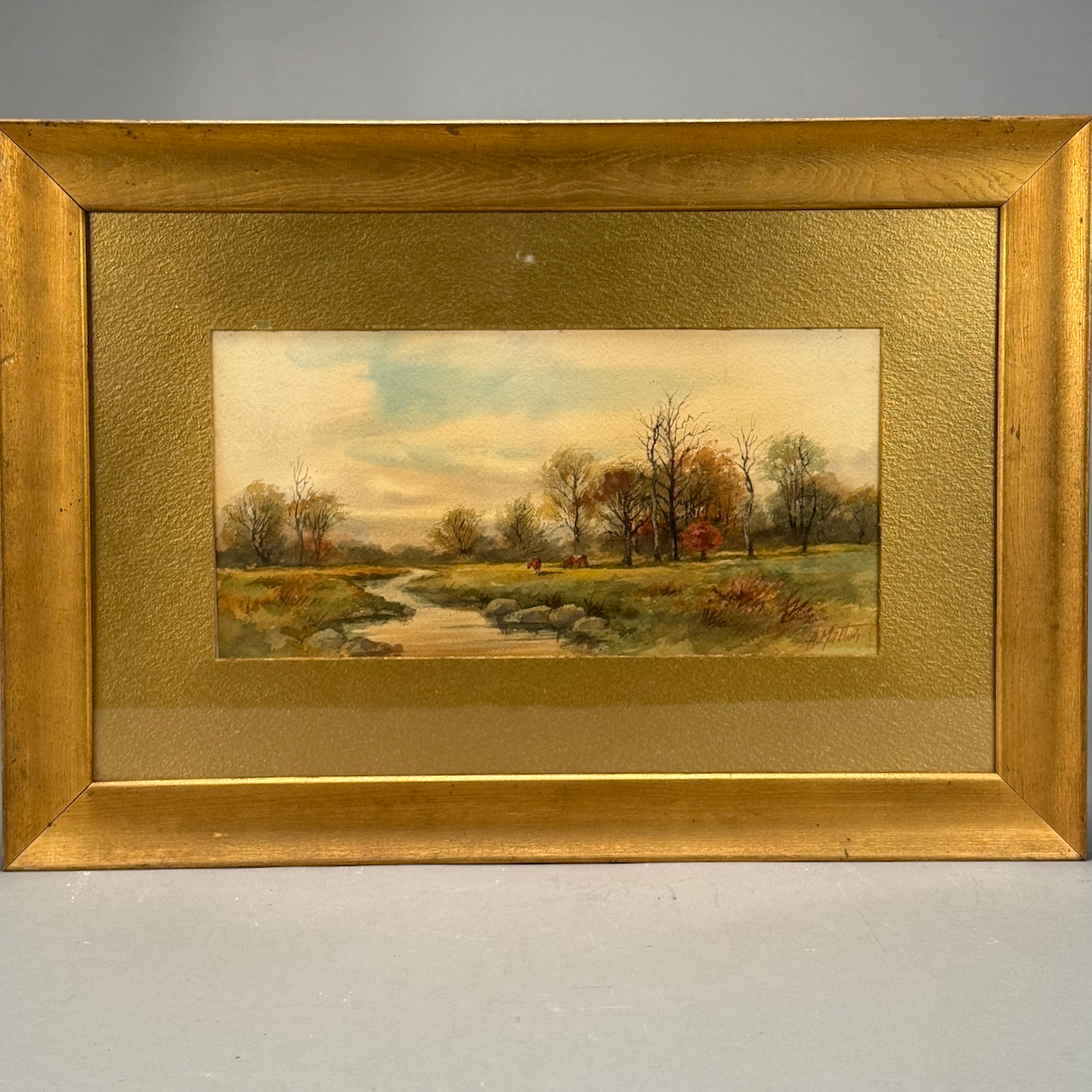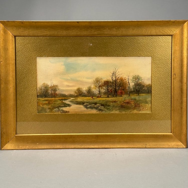 Home / ANTIQUE AUCTION - FRI OCTOBER 3 AT 6 PM / LOT 337 A. MATHEWS, LATE AUTUMN LANDSCAPE, WATERCOLOR, SIGNED LOWER RIGHT, FRAMED. 7-3/4 X 15-1/2 SIGHT SIZE LOT 337 A. MATHEWS, LATE AUTUMN LANDSCAPE, WATERCOLOR, SIGNED LOWER RIGHT, FRAMED. 7-3/4 X 15-1/2 SIGHT SIZE Place a Bid Categories: ANTIQUE AUCTION - FRI OCTOBER 3 AT 6 PM, OCTOBER 3 AT 6 PM Tag: auction Related products LOT 006 FINE PAIR OF FANCY STERLING SILVER CANDLESTICKS, SHEFFIELD, 1903-4 WITH MAKER’S MARK ‘HE LD’, 12″(H) LOT 009 48 PC STERLING SILVER FLATWARE SET IN THE “KING GEORGE” PATTERN BY GORHAM, 57 OZT (WITHOUT 16 KNIVES) MONOGRAMMED LOT 010 2 STERLING SILVER SHAKERS, ONE 6″(H) WITH BLURRED ENGLISH HALLMARKS, THE OTHER 6-1/2″(H) MARKED STERLING. 9 OZT LOT 020 STERLING SILVER HINGED SQUARE BOX, LONDON, 1806, MAKERS MARK RH?, THE LID WITH A REPOUSSE SCENE OF 2 MEN PLAYING A BOARD GAME. 1-1/4″(H), 4″(W), 4″(D)