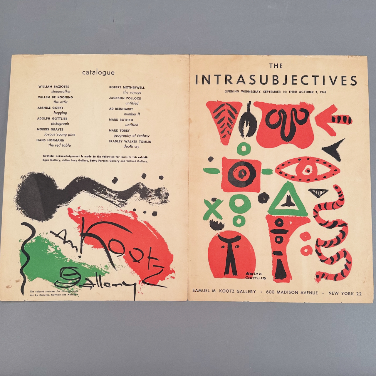 Home / ANTIQUE ESTATE AUCTION - FRI MARCH 27 AT 6 PM / LOT 344 1949 ORIGINAL CATALOGUE BROCHURE FOR THE “INTRASUBJECTIVES” AT THE SAMUEL M. KOOTZ GALLERY NYC. 15 X 11 FOLDED LOT 344 1949 ORIGINAL CATALOGUE BROCHURE FOR THE “INTRASUBJECTIVES” AT THE SAMUEL M. KOOTZ GALLERY NYC. 15 X 11 FOLDED Place a Bid Category: ANTIQUE ESTATE AUCTION - FRI MARCH 27 AT 6 PM Tag: auction Related products LOT 024 STEPHEN G. MANIATTY, ‘OCTOBERS GIFT’, OIL ON CANVAS, SIGNED LOWER RIGHT, FRAMED. 34 X 25 LOT 011 4 PCS OF ENGLISH STERLING SILVER. (1) EXPANDING TOAST RACK, 1901-1902, LONDON, 3″(H). (2) 3″ TEA CADDY SPOON, 1796-7, LONDON. (3) 7″ RETICULATED 2 HANDLED DISH, 1906-7, BIRMINGHAM. (4) 2″(H) TANKARD SHAPED MUSTARD WITH COBALT LINER, 1902-3, BIRMINGHAM. 12.6 OZT (W/O LINER) LOT 006 FINE PAIR OF FANCY STERLING SILVER CANDLESTICKS, SHEFFIELD, 1903-4 WITH MAKER’S MARK ‘HE LD’, 12″(H) LOT 009 48 PC STERLING SILVER FLATWARE SET IN THE “KING GEORGE” PATTERN BY GORHAM, 57 OZT (WITHOUT 16 KNIVES) MONOGRAMMED