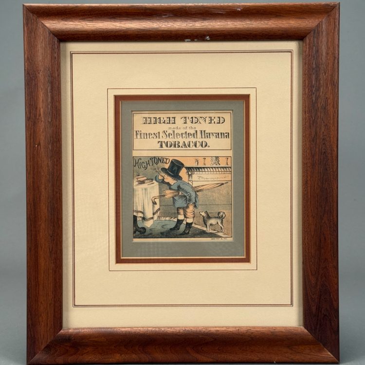 Home / ANTIQUE AUCTION - FRI OCTOBER 3 AT 6 PM / LOT 363 FRAMED ADVERTISEMENT FOR “HIGH TONED” TOBACCO, LITHOGRAPH BY CRAIG FINLY, PHIL. 7 X 5-1/2 SIGHT SIZE LOT 363 FRAMED ADVERTISEMENT FOR “HIGH TONED” TOBACCO, LITHOGRAPH BY CRAIG FINLY, PHIL. 7 X 5-1/2 SIGHT SIZE Place a Bid Categories: ANTIQUE AUCTION - FRI OCTOBER 3 AT 6 PM, OCTOBER 3 AT 6 PM Tag: auction Related products LOT 008 11 STERLING SILVER PLATES BY GORHAM. 6″(D), 27.8 OZT LOT 004 133 PC STERLING SILVER FLATWARE SET IN THE “KING PATTERN. 190 OZT (EXCLUDING 12 KNIVES), MONOGRAMMED LOT 018 COIN SILVER HANDLED CUP, PROBABLY FREEMAN & WALLIN, PHILADELPHIA, CIRCA 1850. 4″(H), 3.6 OZT. LOT 012 2 SMALL STERLING SILVER TRAYS. (1) 6″ SQUARE BY DOMINICK & HAFF (2) 7-1/2 X 5-1/2 OVAL FOOTED TRAY BY J.E. CALDWELL & CO, BOTH MONOGRAMMED. 11.7 OZT