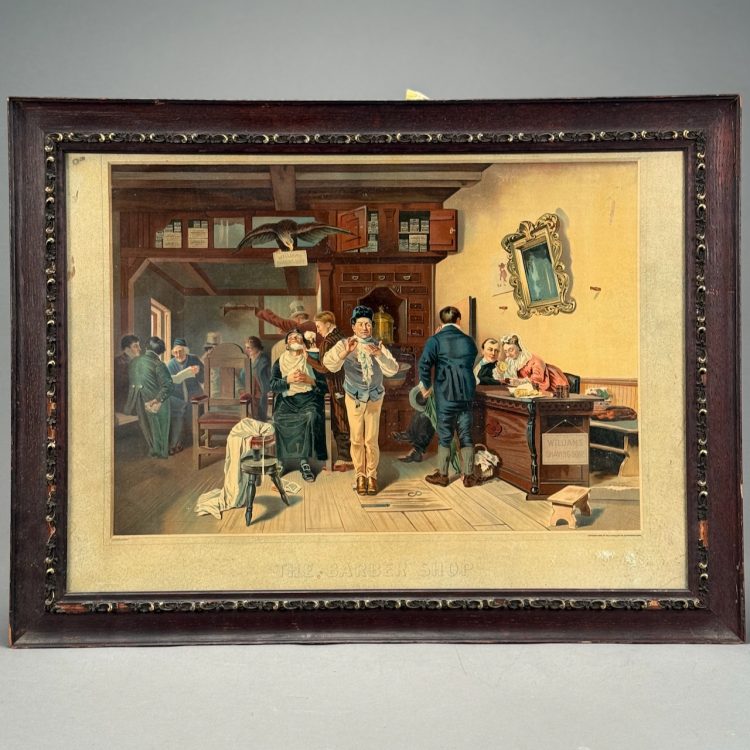 Home / ANTIQUE AUCTION - FRI OCTOBER 3 AT 6 PM / LOT 373 FRAMED CHROMOLITHOGRAPH TITLED “THE BARBER SHOP” BY J. OTTMANN LITH. CO, N.Y. 16-1/2 X 23-1/2 LOT 373 FRAMED CHROMOLITHOGRAPH TITLED “THE BARBER SHOP” BY J. OTTMANN LITH. CO, N.Y. 16-1/2 X 23-1/2 Place a Bid Categories: ANTIQUE AUCTION - FRI OCTOBER 3 AT 6 PM, OCTOBER 3 AT 6 PM Tag: auction Related products LOT 013 3 PCS OF STERLING SILVER: (1) OVAL DEEP SERVING DISH BY E. CALDWELL & CO, 10 X 6-1/2. (2) PORRINGER BY DOMINICK & HAFF, 7″. (3) PORRINGER BY RWM, 6″. 21.8 OZT LOT 016 6 PCS OF STERLING SILVER: (1) 6″(D) PLATE BY TOWLE. (2) 3-1/2 FOOTED CREAMER BY POOLE. (3) 4″(D) FOOTED BOWL BY SHREVE, CRUMP & LOW CO (4) 7″(L) FOOTED GRAVY BY J.E. CALDWELL & CO (5) 4″ CREAMER BY DOMINICK & HAFF (6) 6-3/4″(W) DISH BY TOWLE. 25.2 OZT LOT 004 133 PC STERLING SILVER FLATWARE SET IN THE “KING PATTERN. 190 OZT (EXCLUDING 12 KNIVES), MONOGRAMMED LOT 009 48 PC STERLING SILVER FLATWARE SET IN THE “KING GEORGE” PATTERN BY GORHAM, 57 OZT (WITHOUT 16 KNIVES) MONOGRAMMED