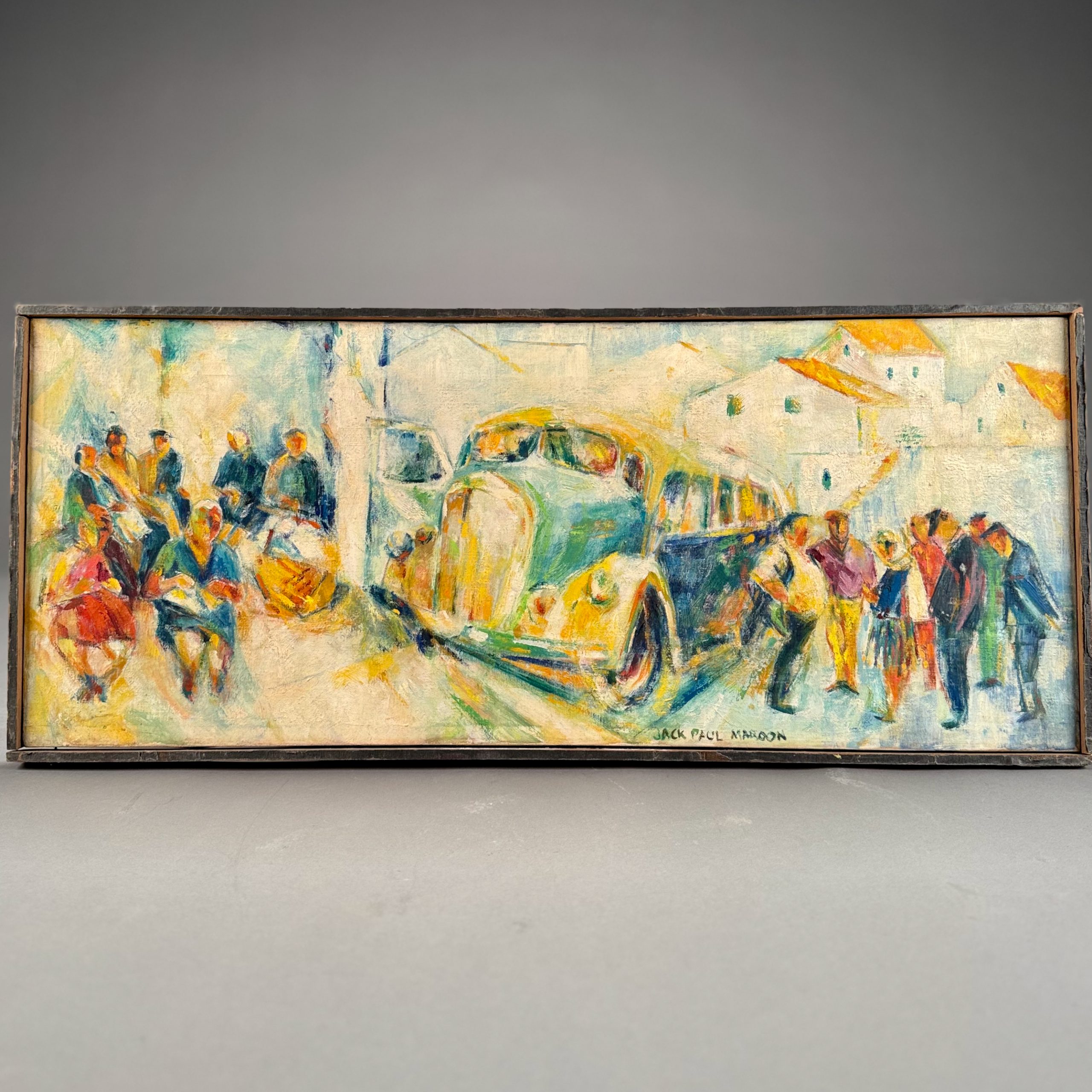 Home / ESTATE COLLECTION OF AMERICAN ARTIST JACK PAUL MAROON DECEMBER 19 AT 6PM / LOT 419 “GREEK PASSENGERS”, OIL ON CANVAS, SIGNED, FRAMED. 12 X 29 LOT 419 “GREEK PASSENGERS”, OIL ON CANVAS, SIGNED, FRAMED. 12 X 29 Place a Bid Category: ESTATE COLLECTION OF AMERICAN ARTIST JACK PAUL MAROON DECEMBER 19 AT 6PM Tag: auction Related products LOT 014 PAIR OF STERLING SILVER 2 HANDLED PLATES BY WEBSTER MARKED ‘6613’, NO MONOGRAM, 10-1/2 AT WIDEST, 21.3 OZT LOT 007 FIXED HANDLED STERLING SILVER LOW BASKET MARKED BIGELOW, KENNARD & CO. 5-1/2″(H), 10-1/2″(D), 9.8 OZT LOT 020 STERLING SILVER HINGED SQUARE BOX, LONDON, 1806, MAKERS MARK RH?, THE LID WITH A REPOUSSE SCENE OF 2 MEN PLAYING A BOARD GAME. 1-1/4″(H), 4″(W), 4″(D) LOT 022 STEPHEN G. MANIATTY, ‘BUCKET OF POSIES’, OIL ON CANVAS, SIGNED LOWER RIGHT, FRAMED. 38 X 36